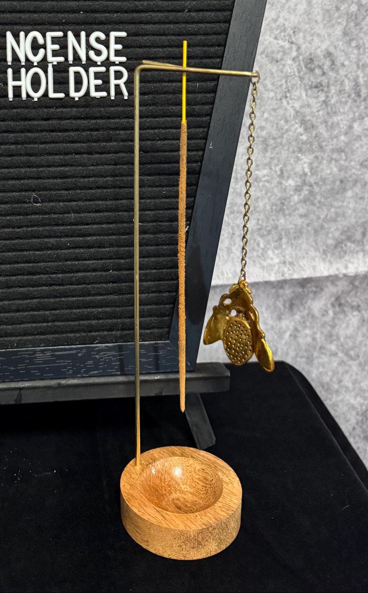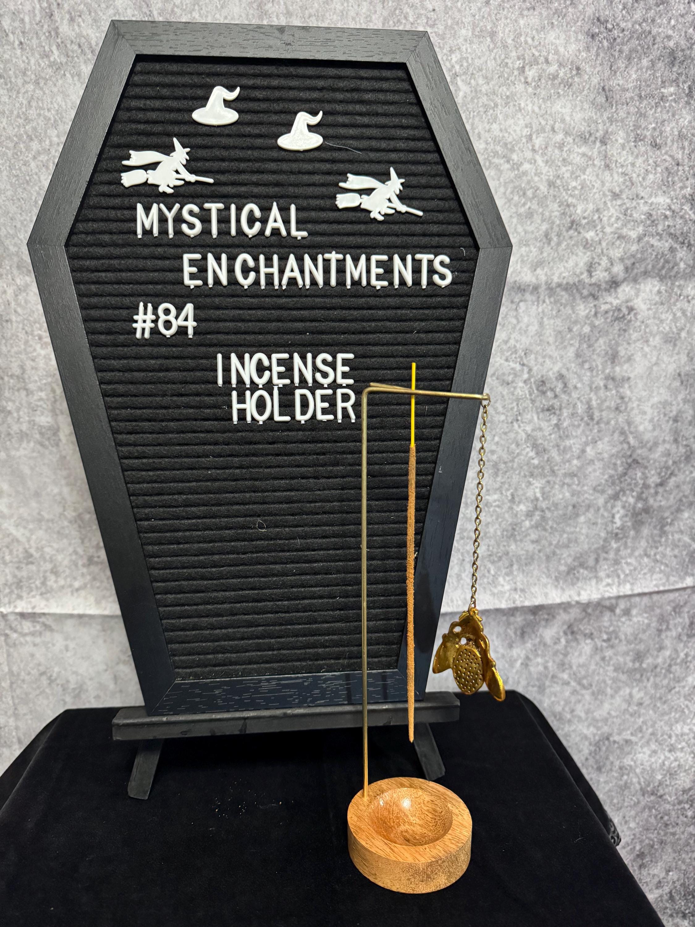 Gold Bumble Bee Incense Holder. Height 10", Incense hangs upside down from the hook at the top and the wooden bowl catches ashes. Its a real cute addition to any incense holder collection.