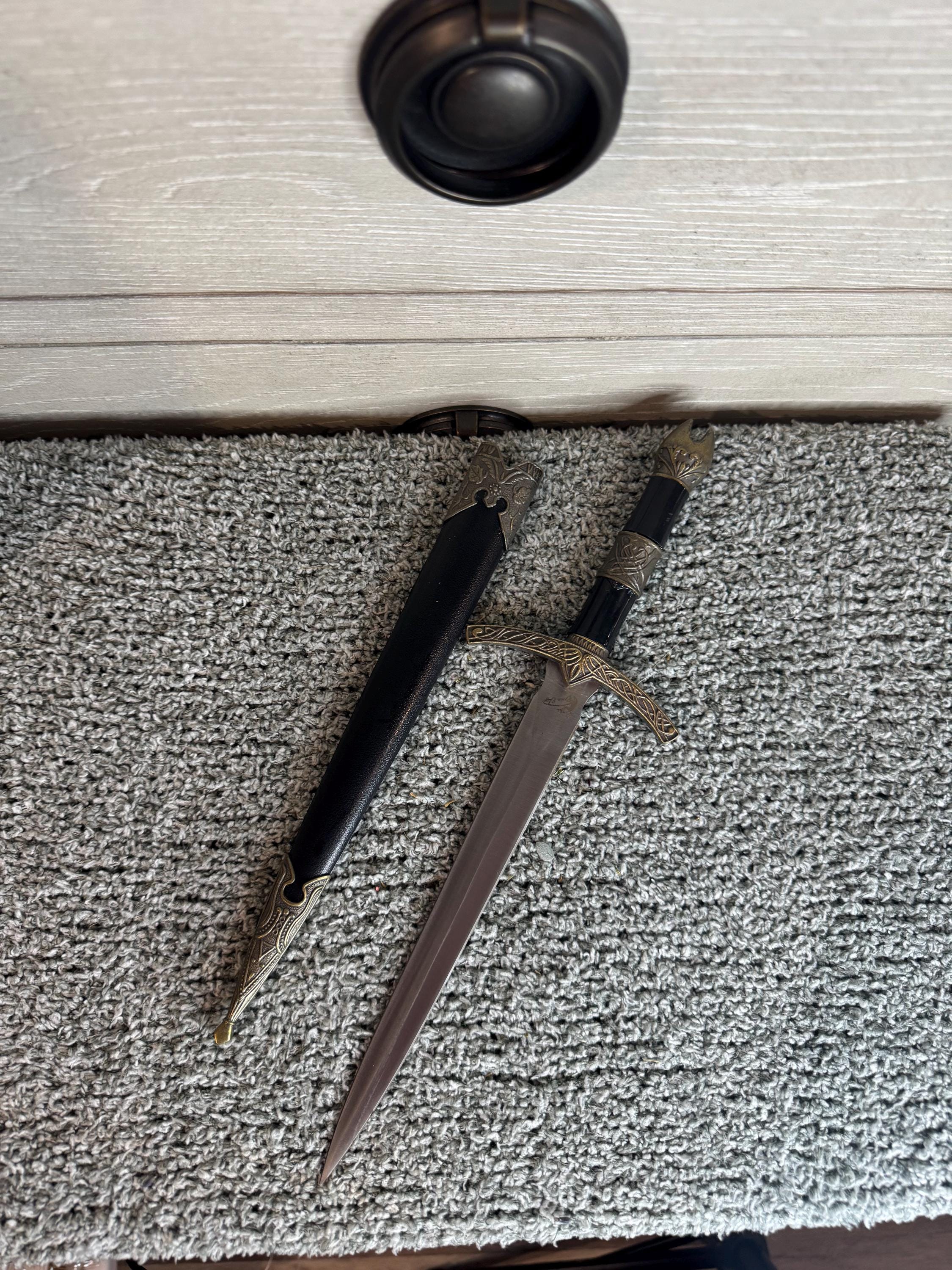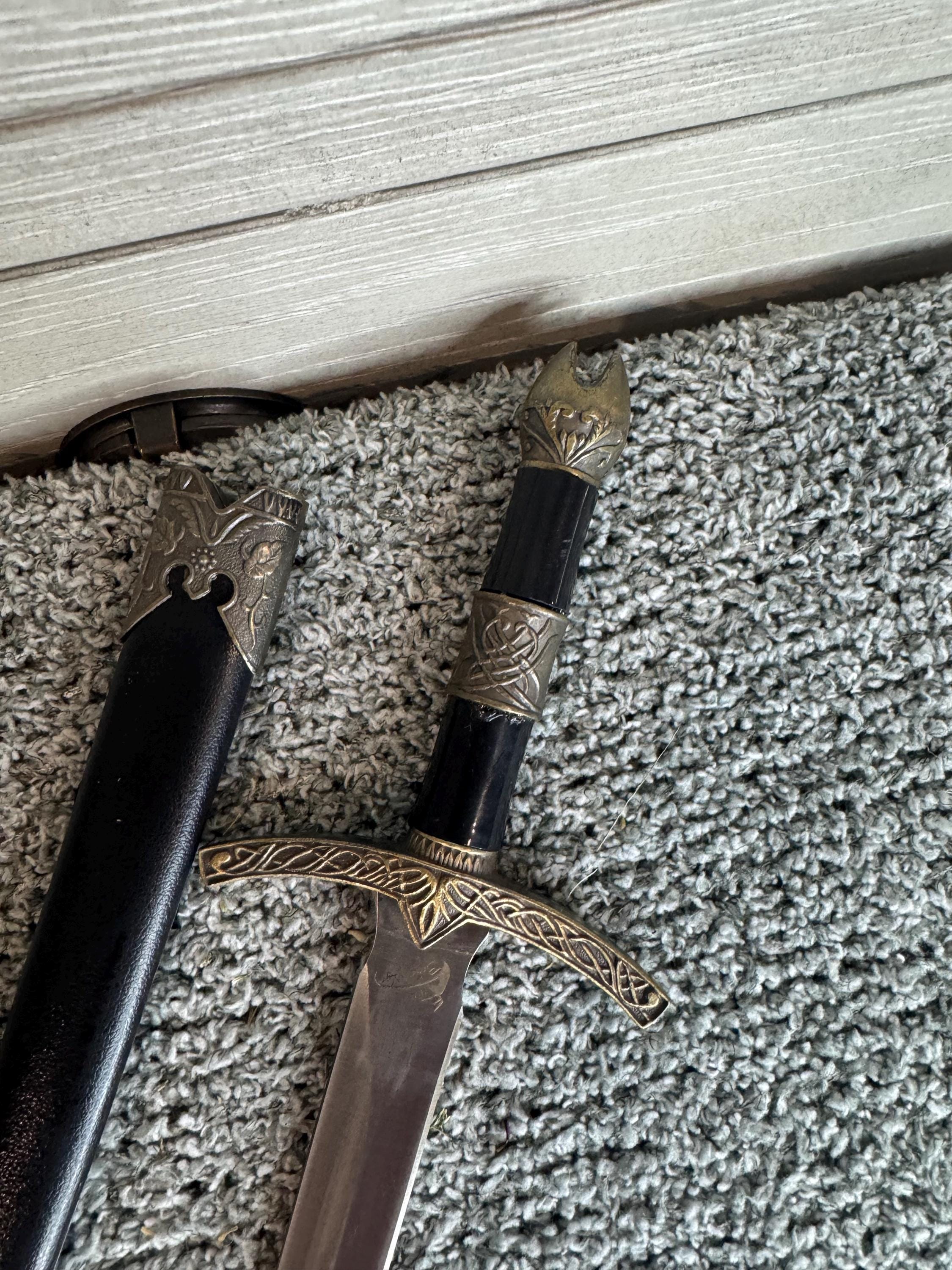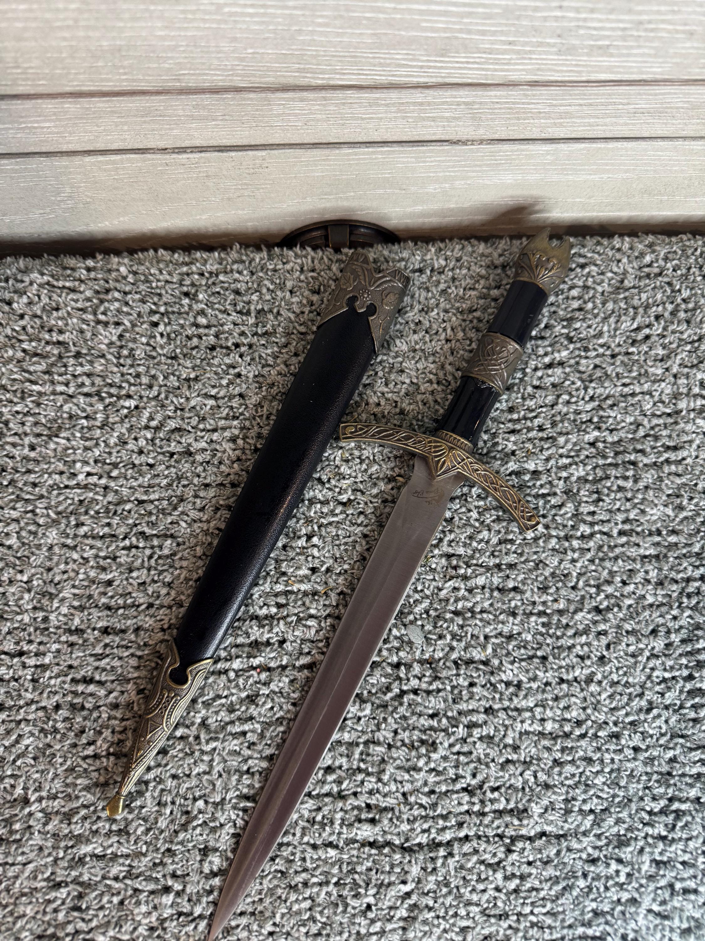 Blade of the Ancients-Unsheathing the Past with The Bone Edge Short Sword. Immerse yourself in the legacy of ancient combat with our 12-inch Roman Style Dagger, a homage to the potent and specialized double-bladed weapons of yore. Overall length is commanding presence at 12 inches, Blade Length is 7.5 Inches, Handle length is a sturdy 4.5-inch handle for a solid grip. Blessed Be!