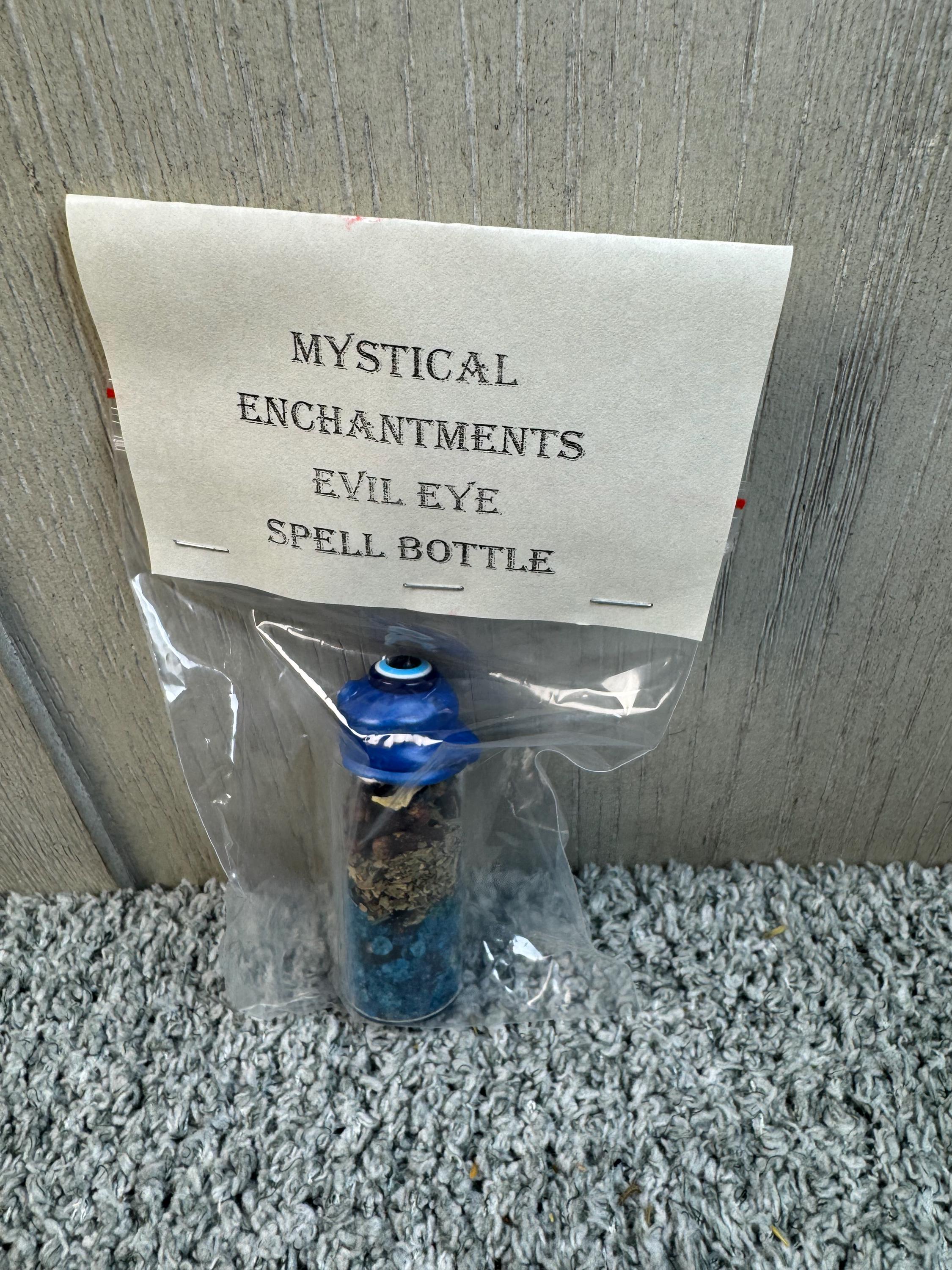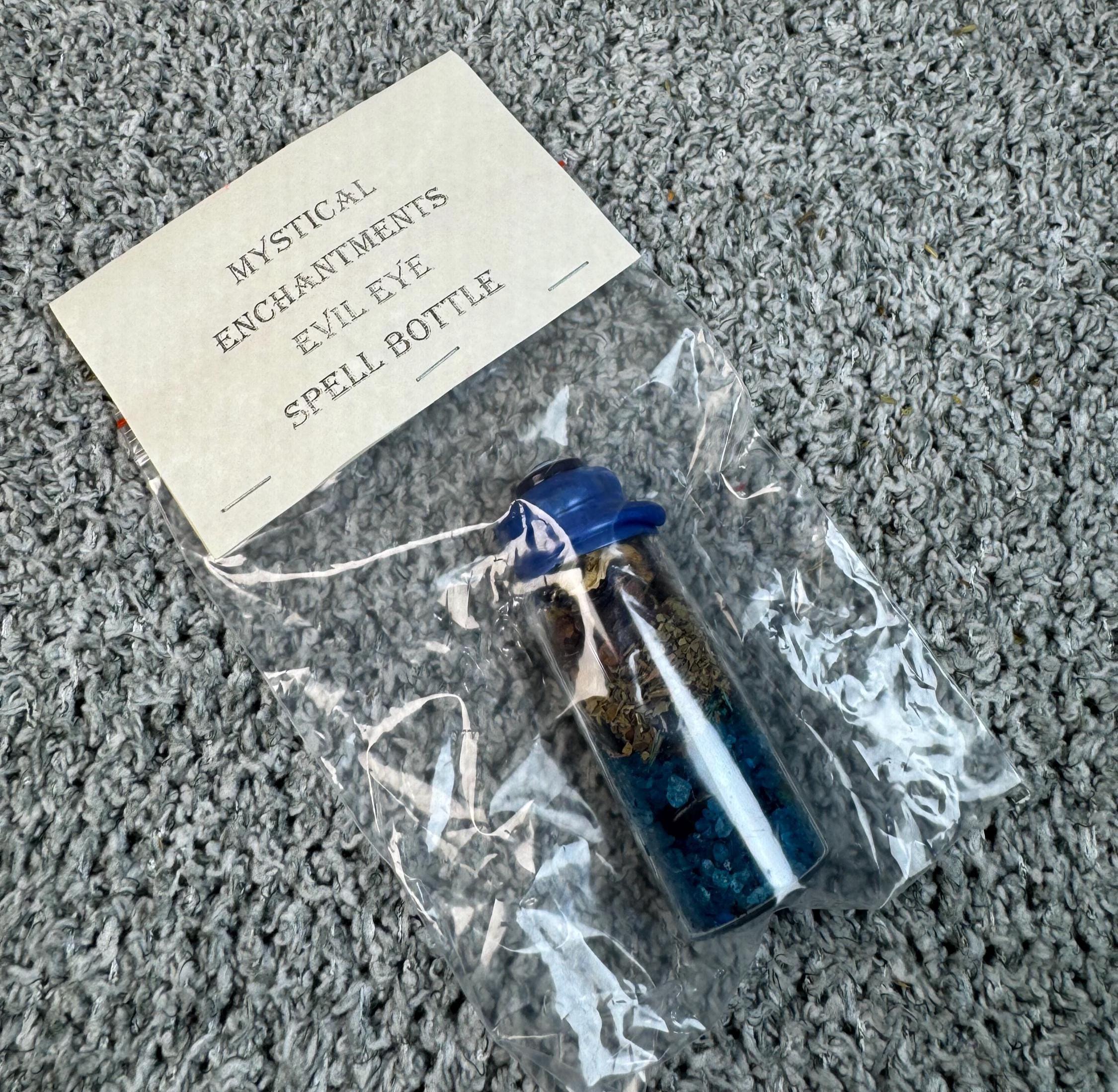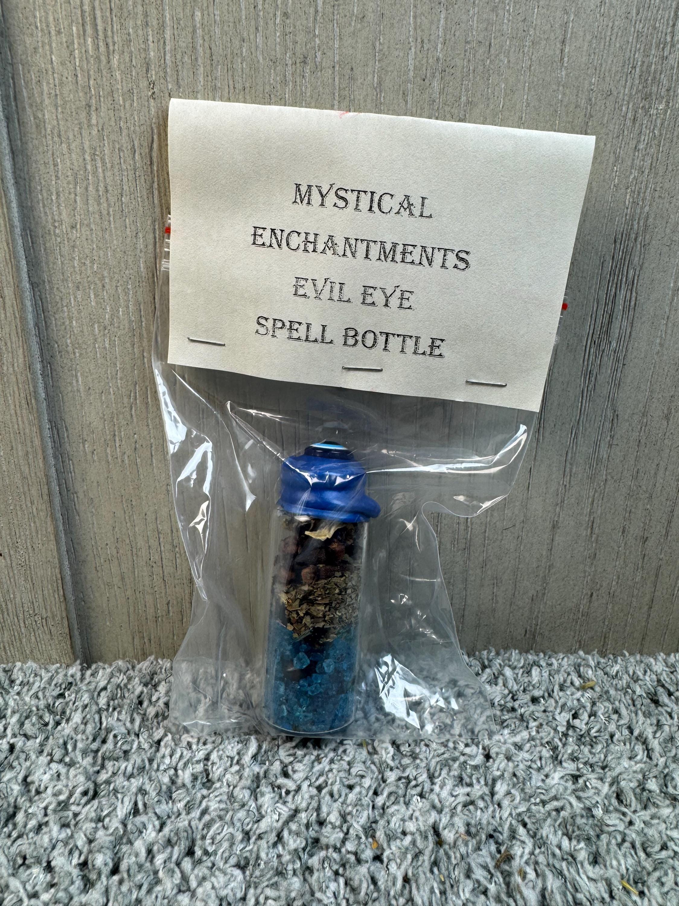 Evil Eye Spell Bottle is a tool for protection against negative energy, jealousy, and bad luck. It is filled with a blend of ingredients like herbs, crystals, and salts, believed to create a spiritual shield, repel harm, and even send negativity back to its source. The purpose is to safeguard well-being, bring good fortune, and break hexes. Key Purpose; protection, energy cleansing, sending negativity back, and attracting good fortune. Picture shows 4 spell bottle order only comes with 1 spell bottle. Blessed Be!