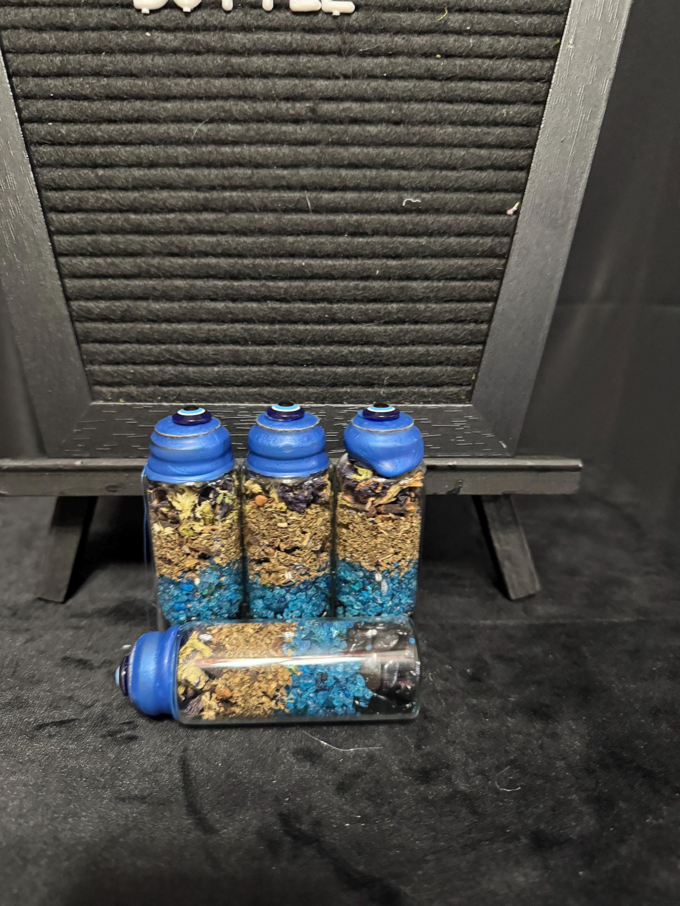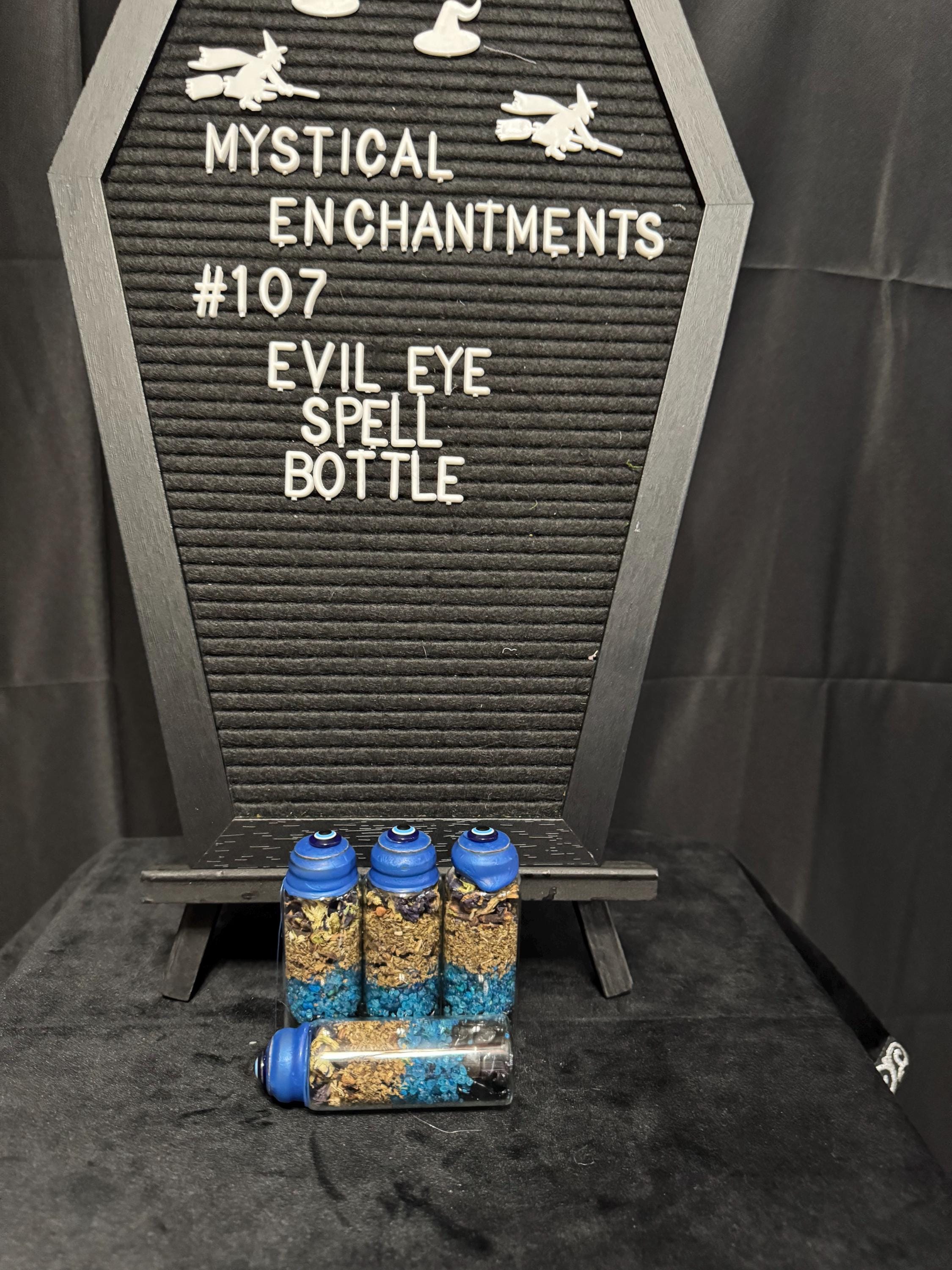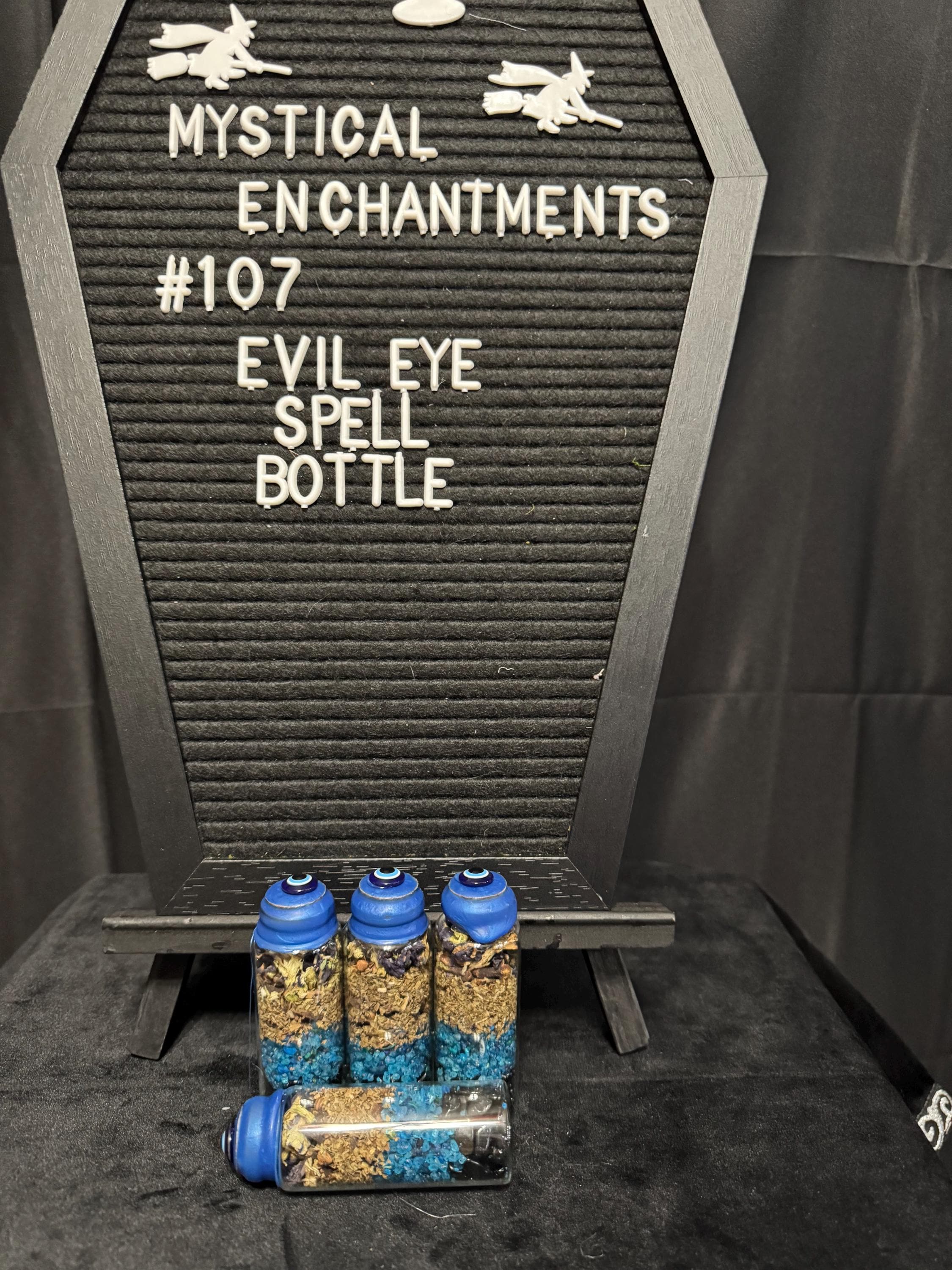 Evil Eye Spell Bottle is a tool for protection against negative energy, jealousy, and bad luck. It is filled with a blend of ingredients like herbs, crystals, and salts, believed to create a spiritual shield, repel harm, and even send negativity back to its source. The purpose is to safeguard well-being, bring good fortune, and break hexes. Key Purpose; protection, energy cleansing, sending negativity back, and attracting good fortune. Picture shows 4 spell bottle order only comes with 1 spell bottle. Blessed Be!