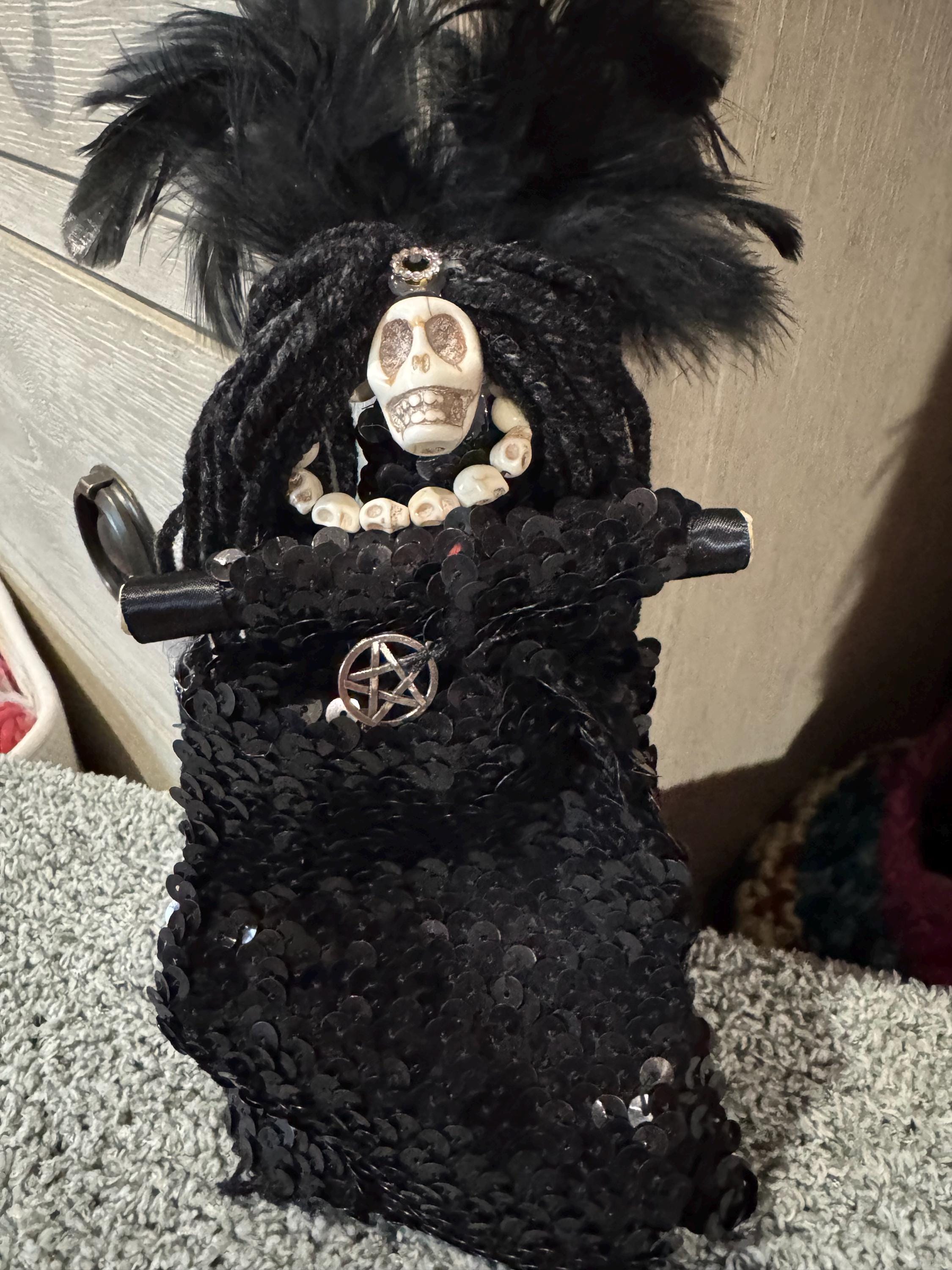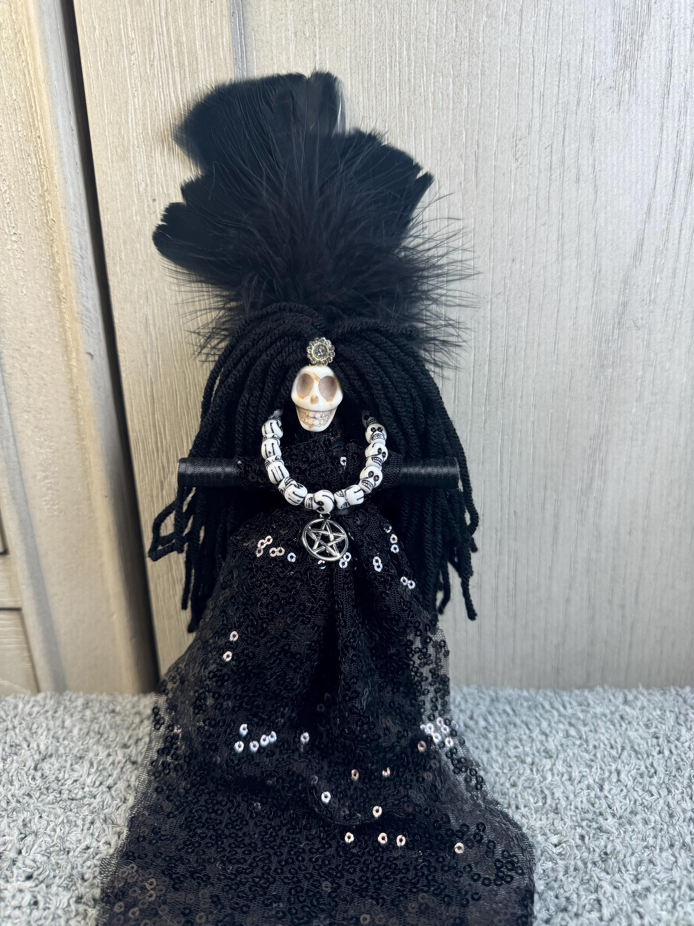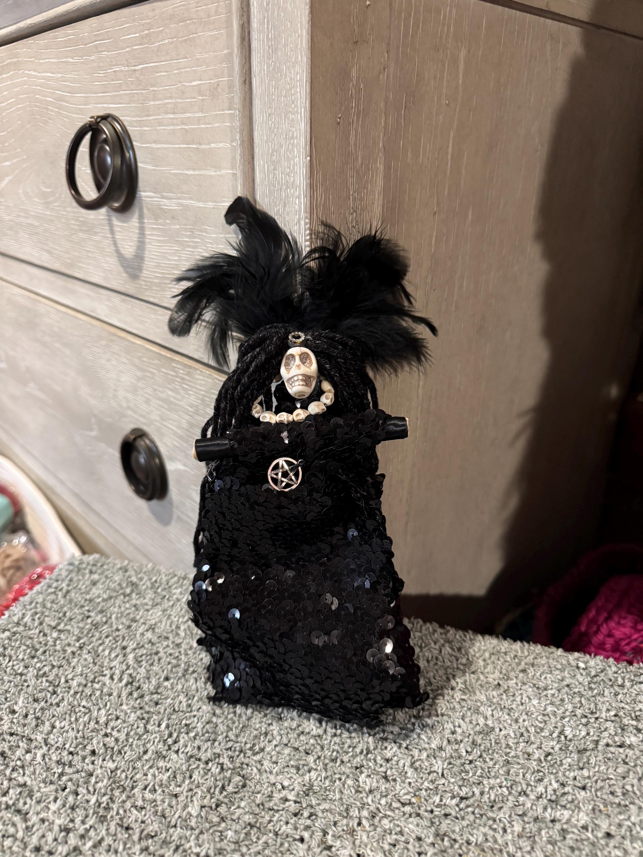 A Black Voodoo Doll is often associated with negative actions like curses, but in many traditions, it has a more neutral or positive purpose, representing a spiritual connection for healing, communication, or protection. The color black specifically can be used in a variety of rituals, including banishing negativity or for connection to certain spirits or ancestors, but the meaning depends on the used and tradition. In Western popular culture, the doll has been sensationalized as a tool for harm, a narrative not rooted in the original practices of Vodou. Comes with instructions, straight pins and a necklace for you. Blessed Be!