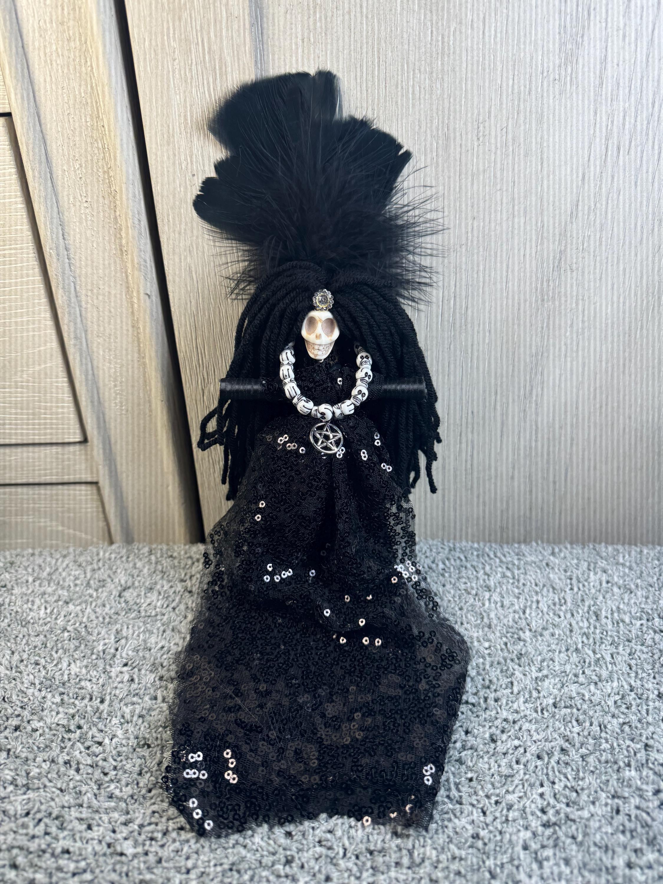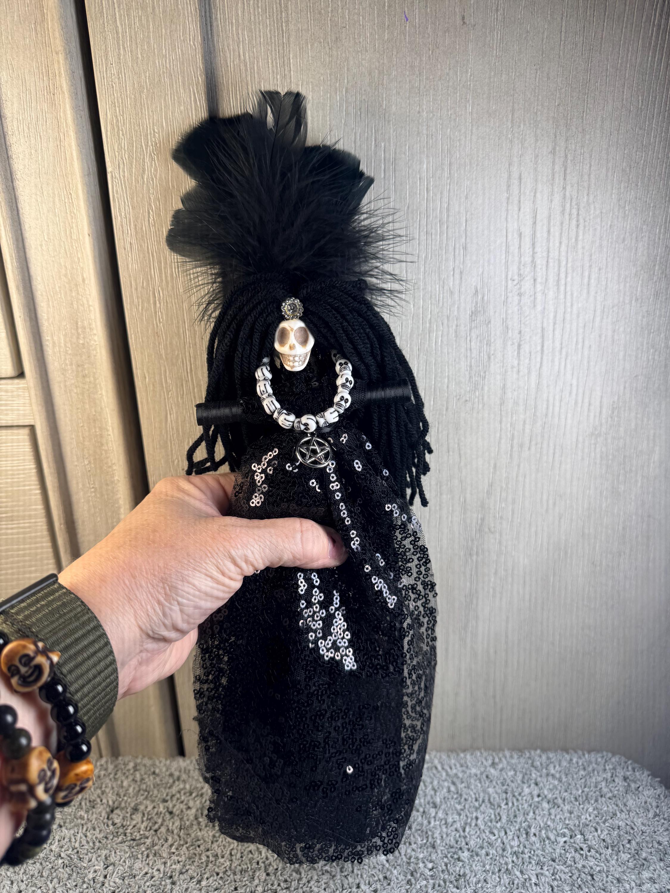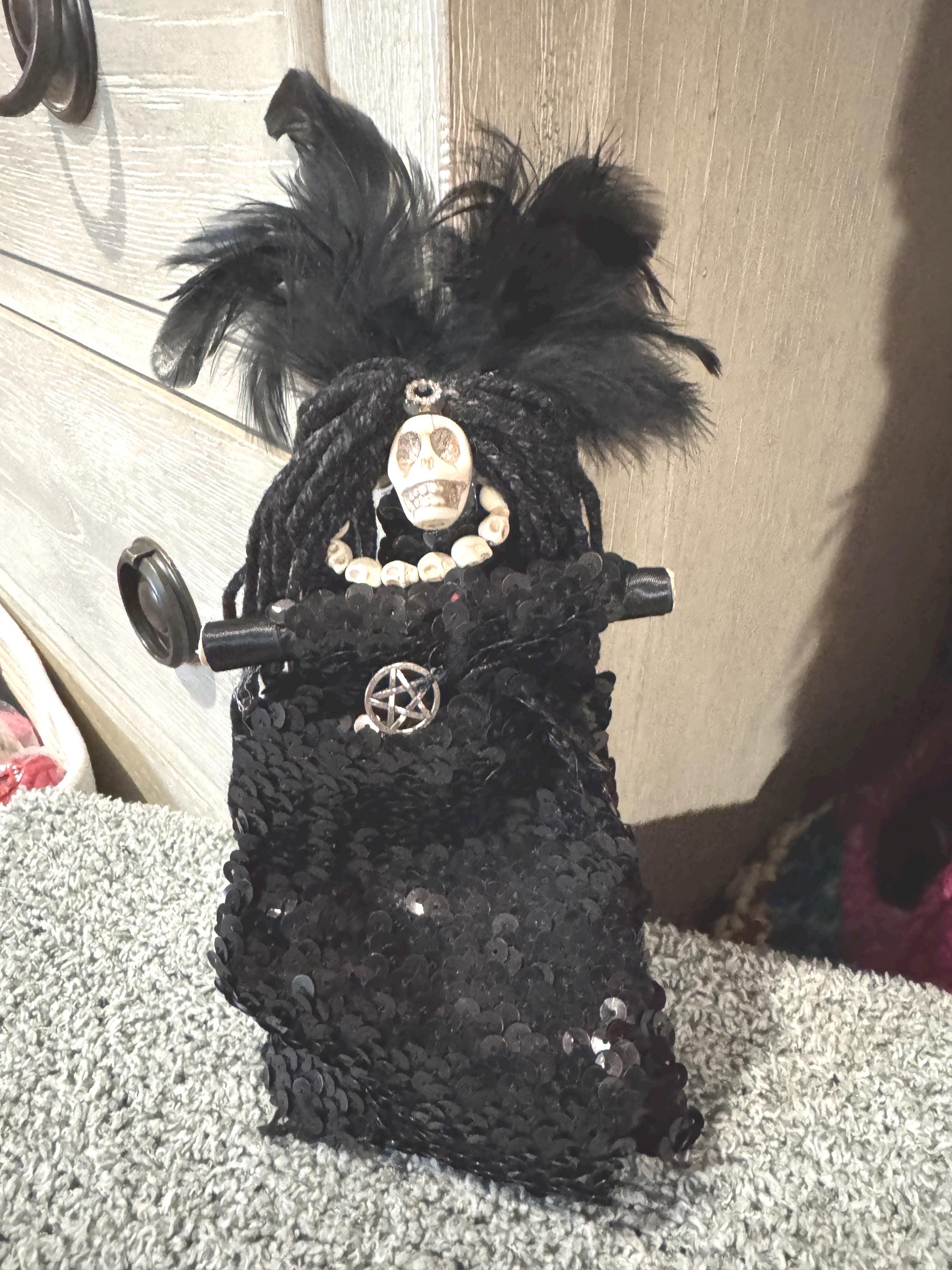A Black Voodoo Doll is often associated with negative actions like curses, but in many traditions, it has a more neutral or positive purpose, representing a spiritual connection for healing, communication, or protection. The color black specifically can be used in a variety of rituals, including banishing negativity or for connection to certain spirits or ancestors, but the meaning depends on the used and tradition. In Western popular culture, the doll has been sensationalized as a tool for harm, a narrative not rooted in the original practices of Vodou. Comes with instructions, straight pins and a necklace for you. Blessed Be!