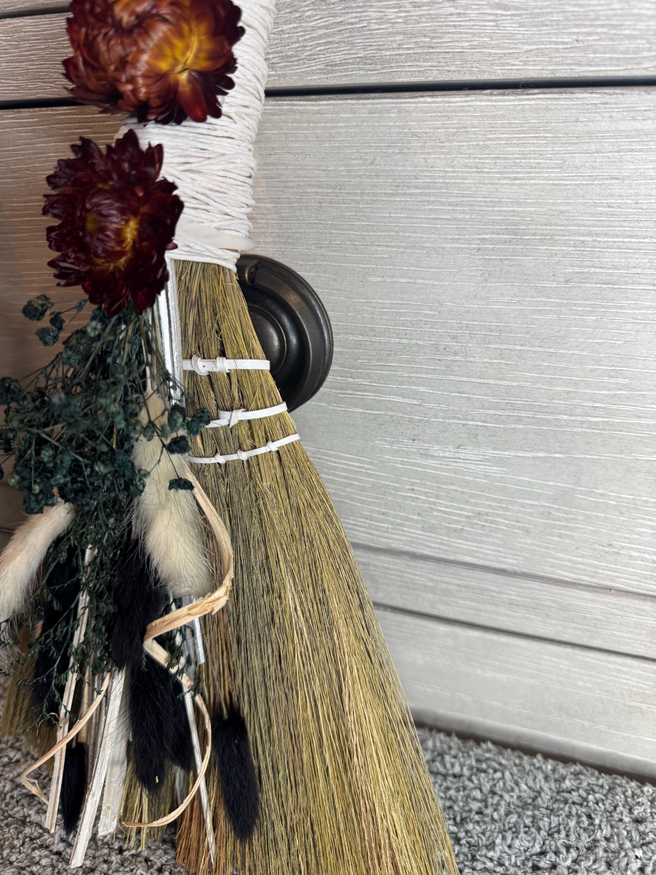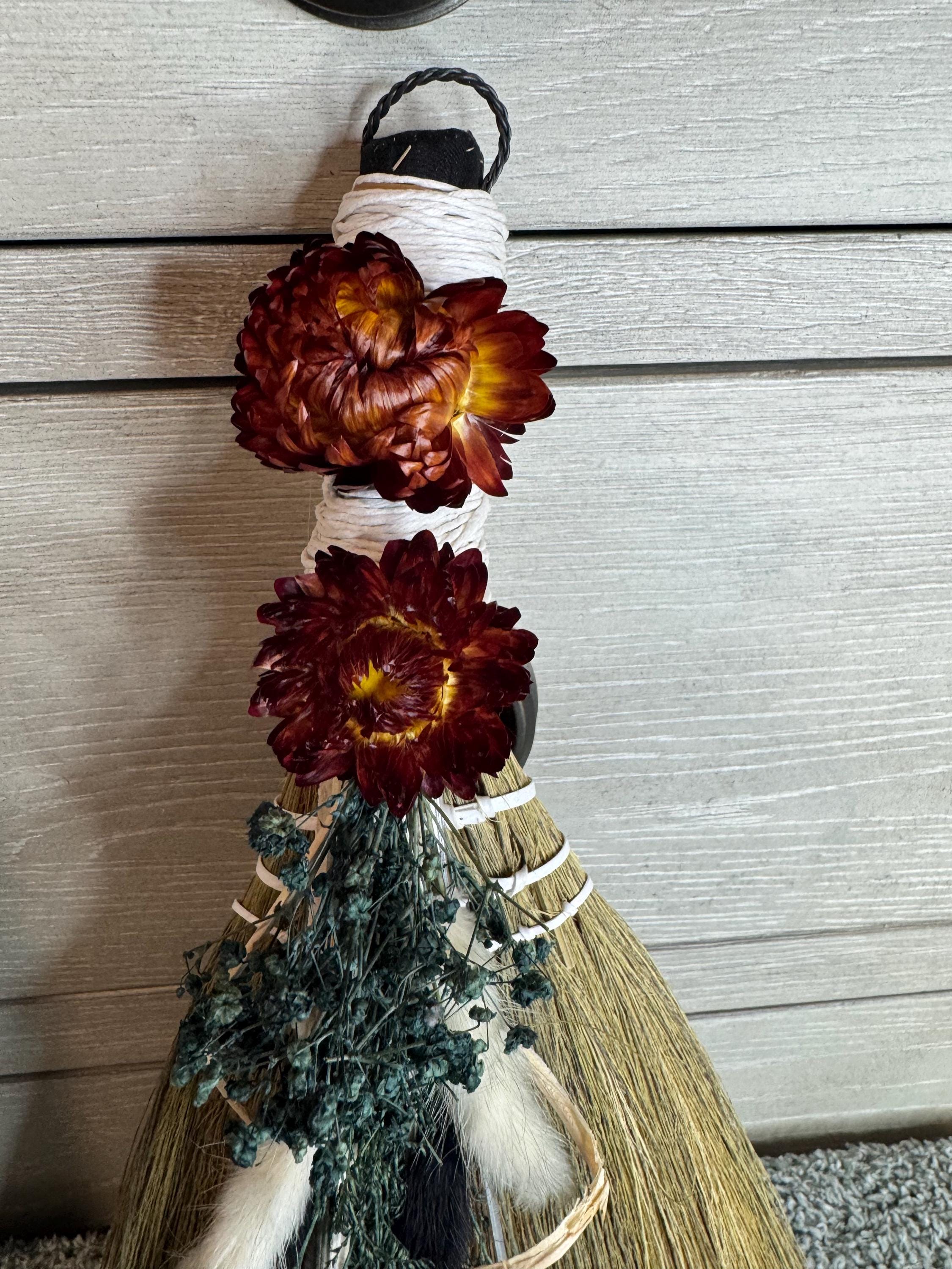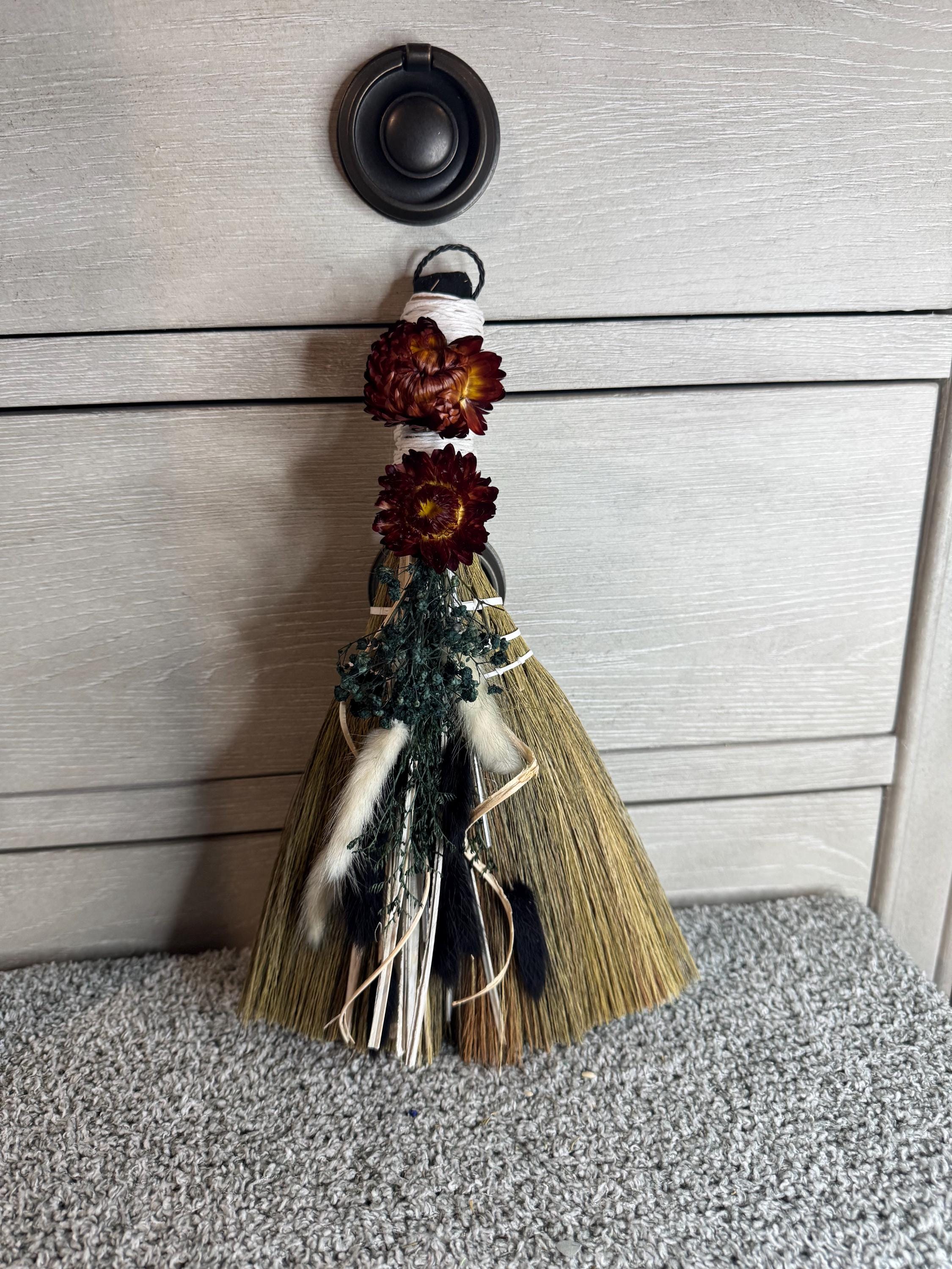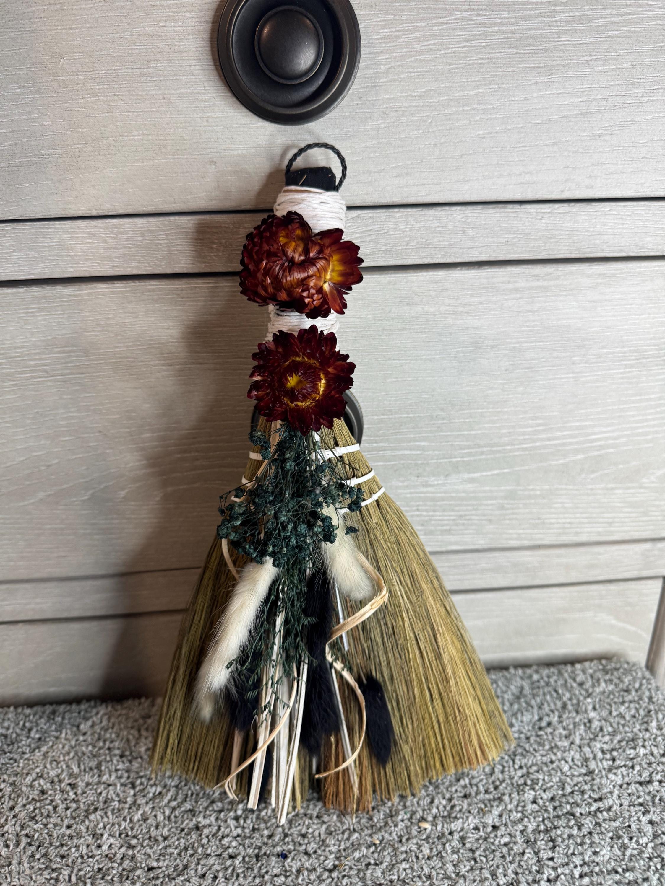An altar Besom is used in witchcraft for magical cleansing, purifying and altar space by sweeping away negative energy, and preparing the area for ritual. It is also used for other purposes like, protection, marking sacred boundaries, and as a symbolic element in handfasting ceremonies. Made with real dried flowers and measures 12" Long. Blessed Be!