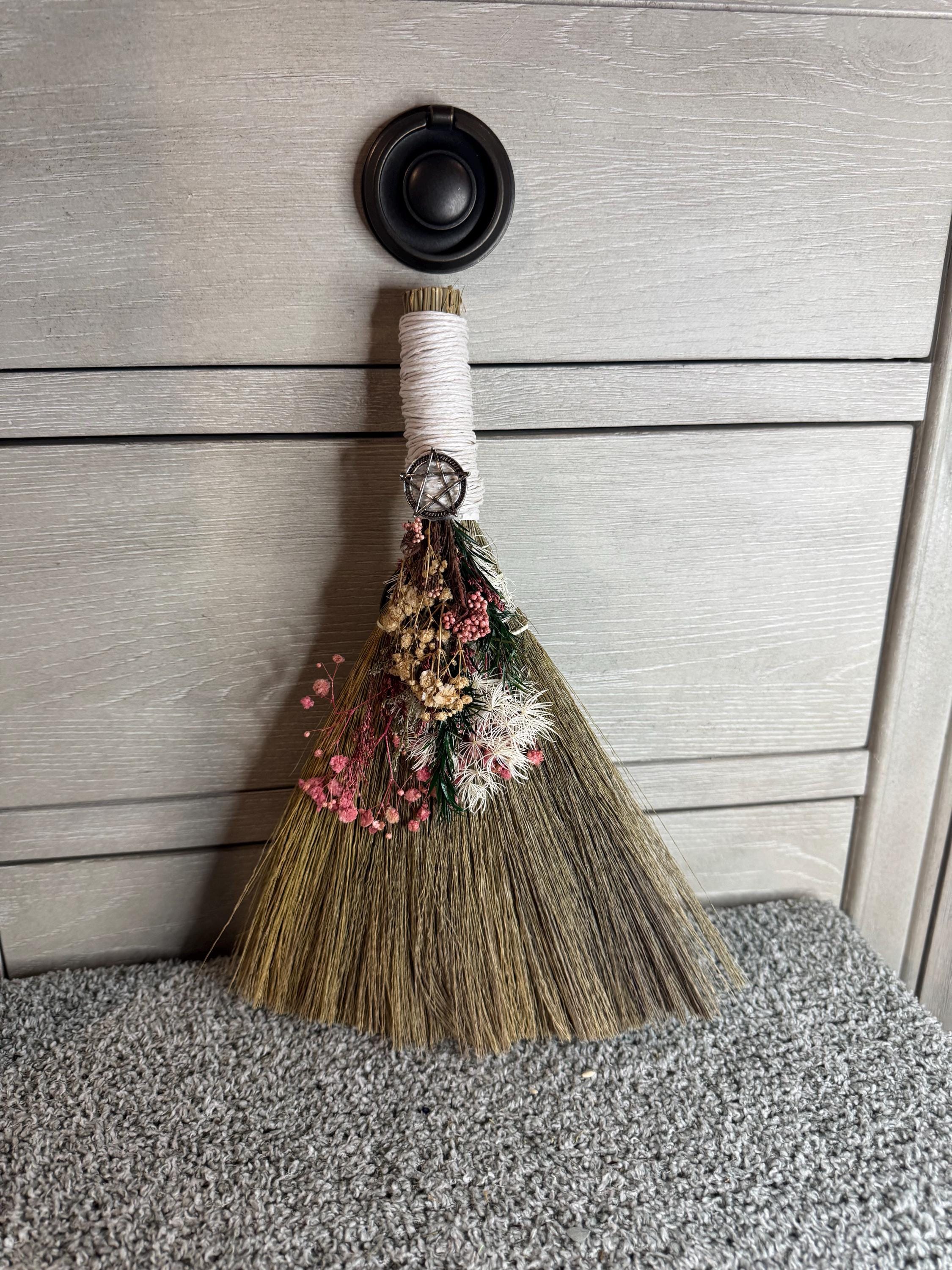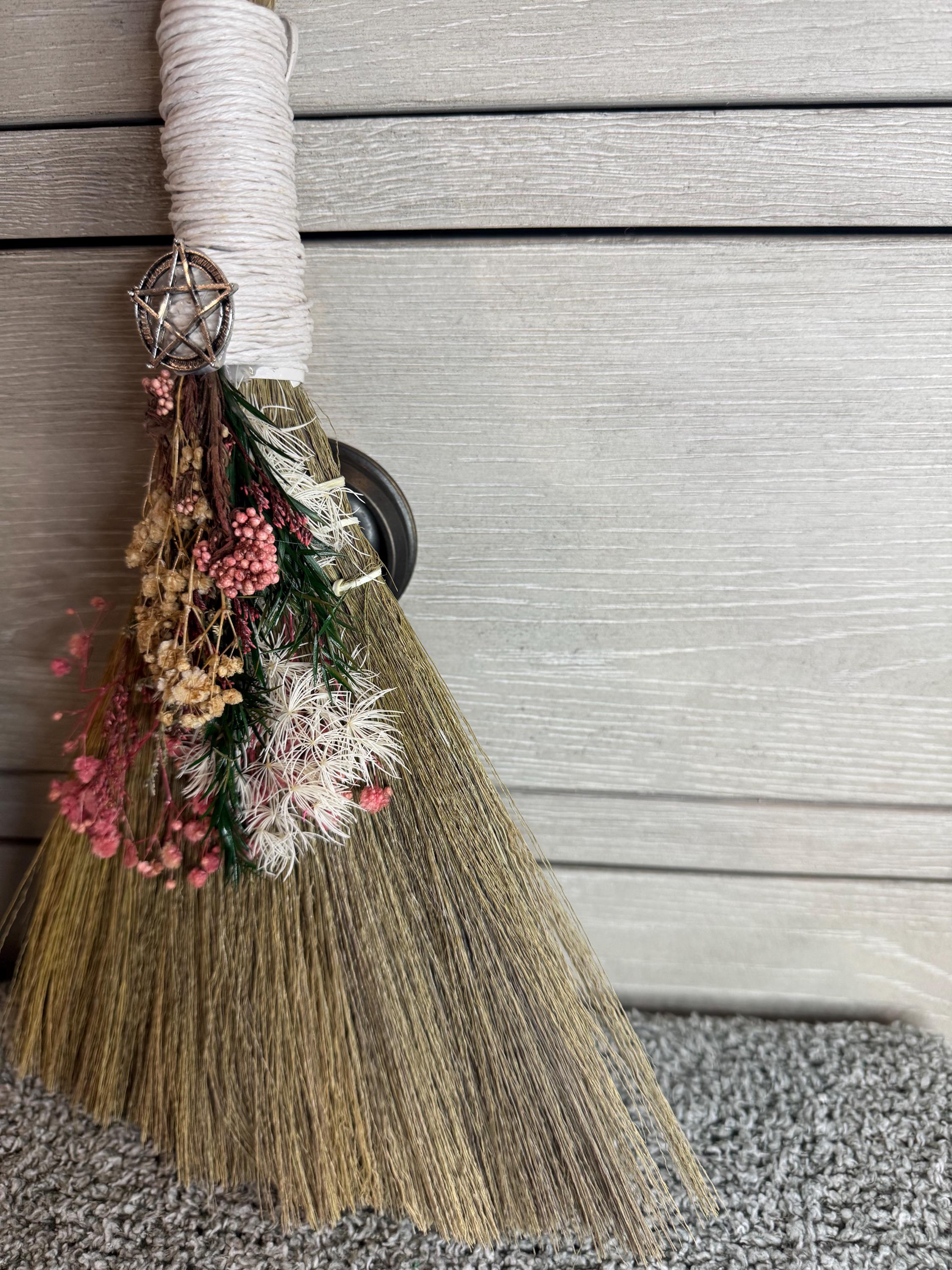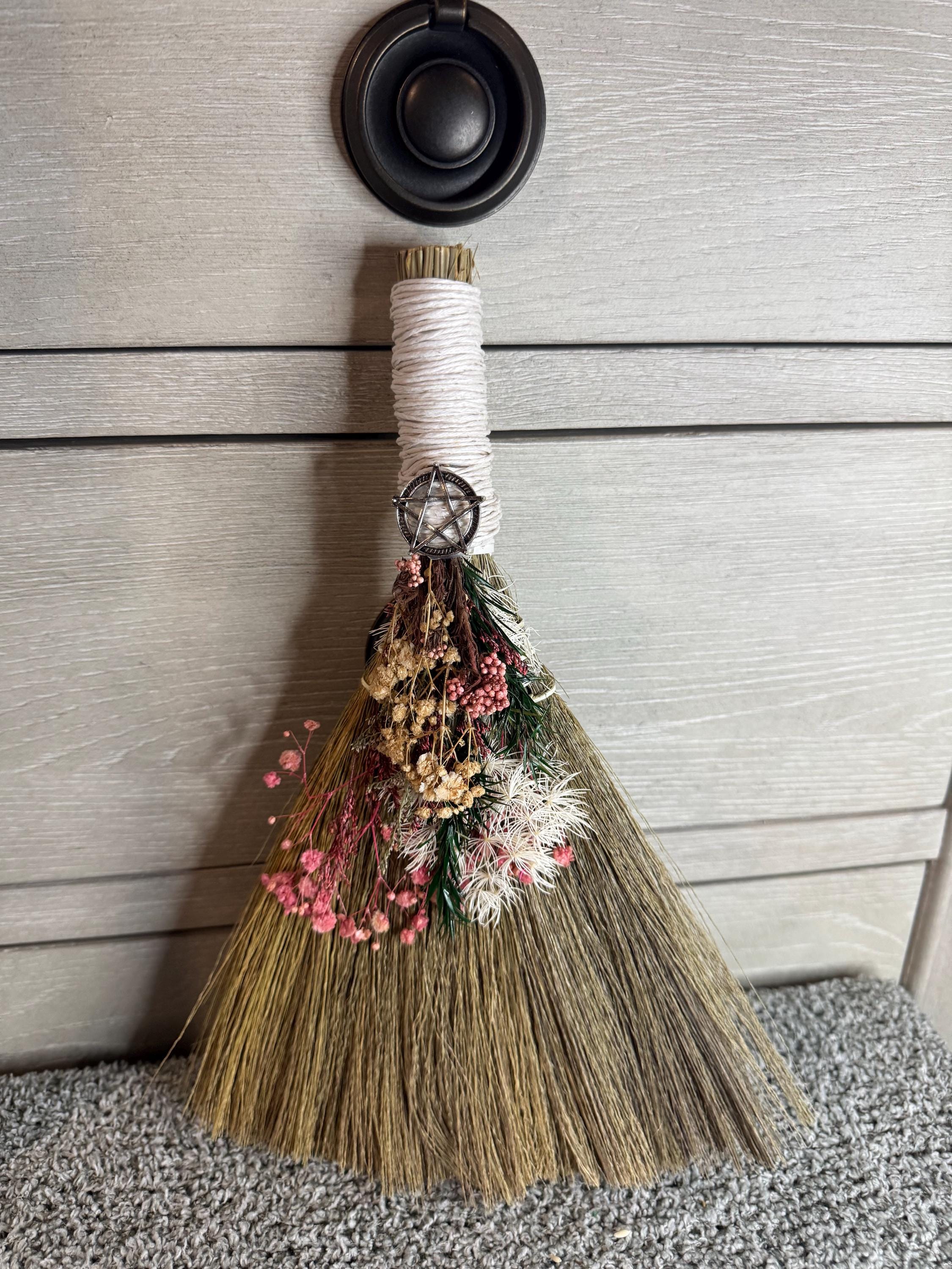 An altar besom is used in witchcraft for magical cleansing, purifying and altar space by sweeping away negative energy, and preparing the area for ritual. It is also used for other purposes like Protection, marking sacred boundaries, and as a symbolic element in handfasting ceremonies. Bemsom is made with real dried flowers and measures 12" Long. Blessed Be!