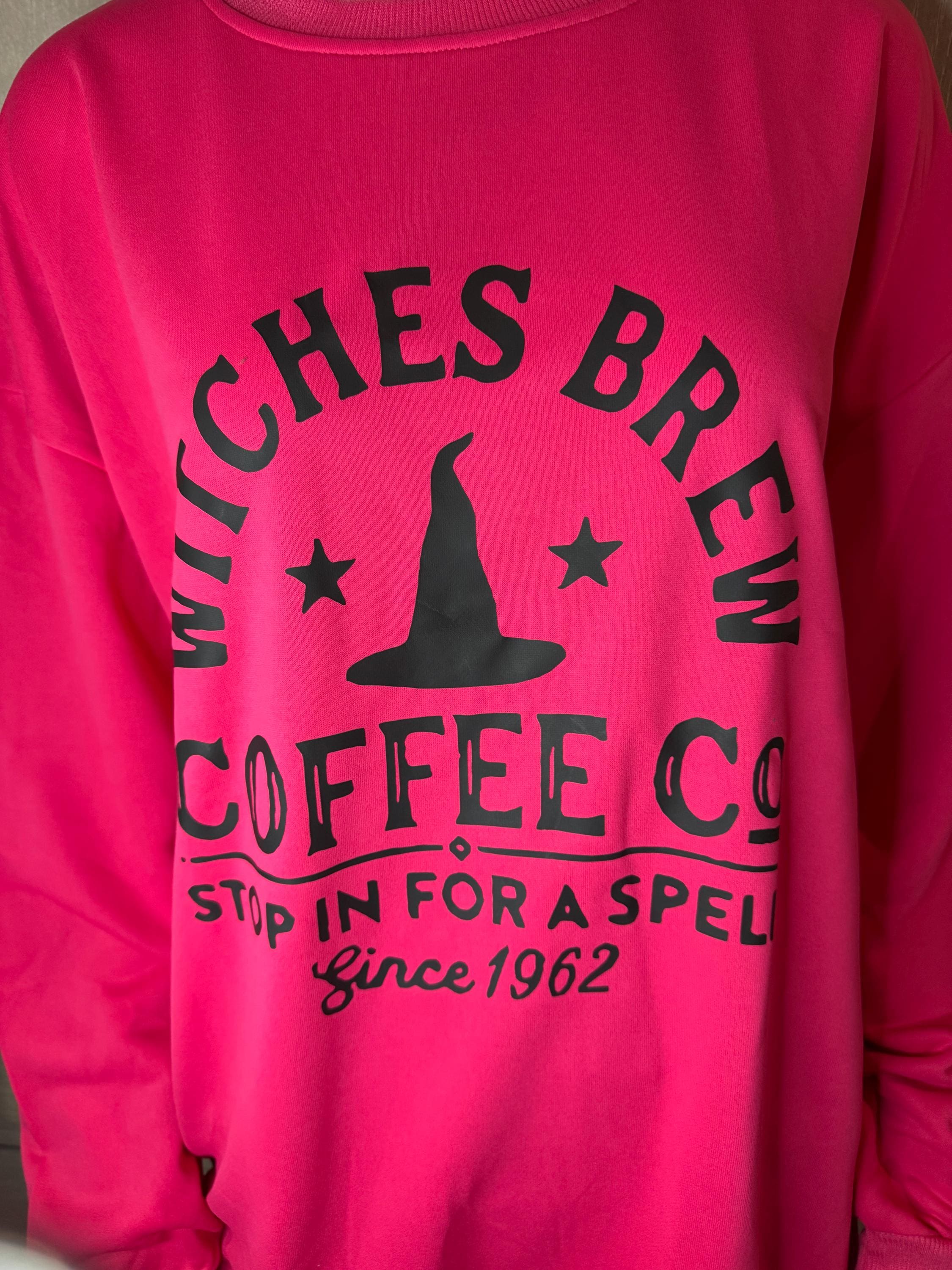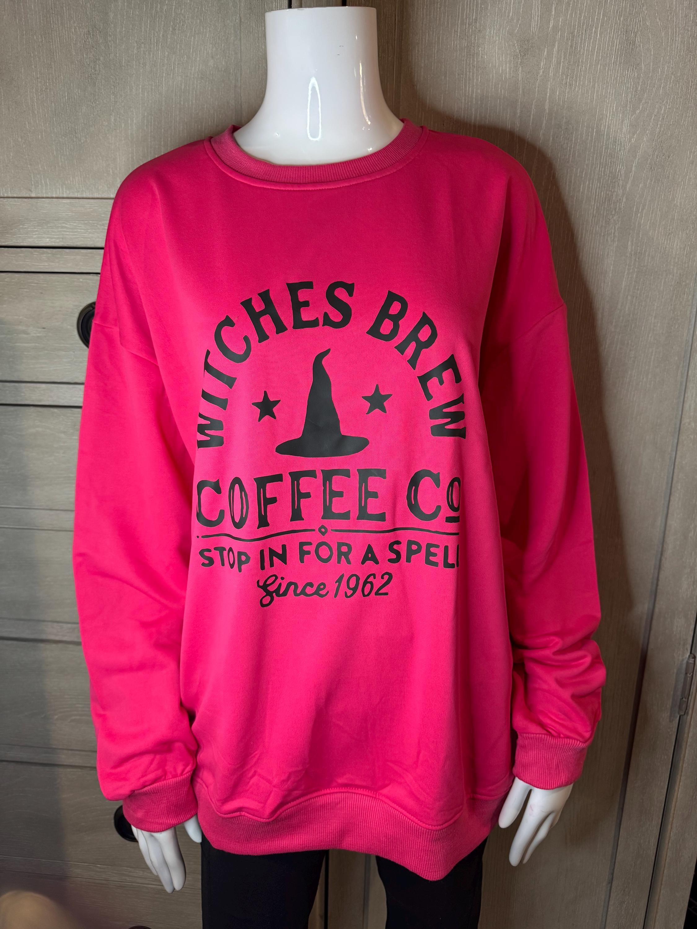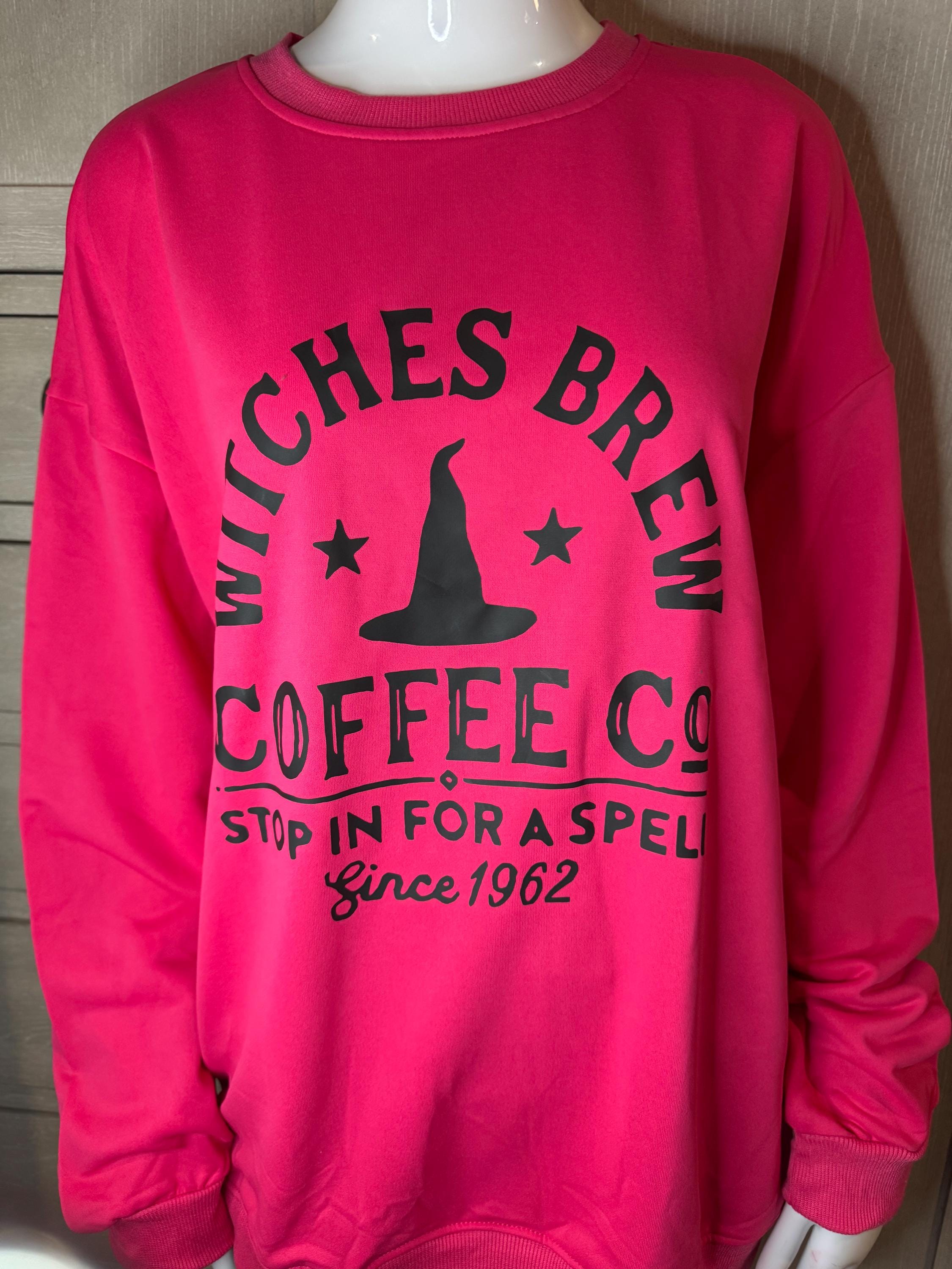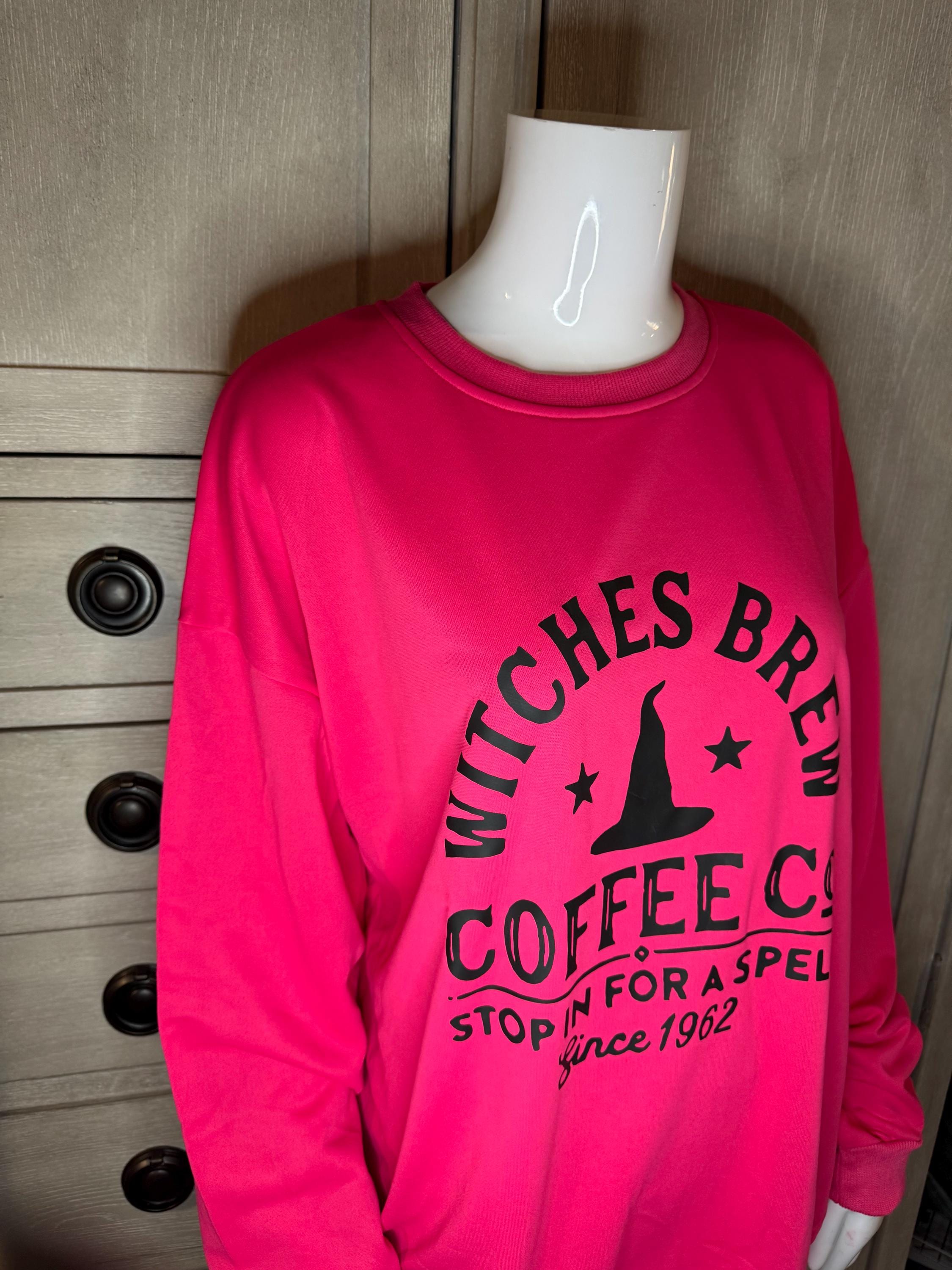 Women's XL Hot Pink Witches Brew Coffee Co. Sweatshirt, round neckline, Long sleeve. NEW 100% Polyester. Blessed Be!