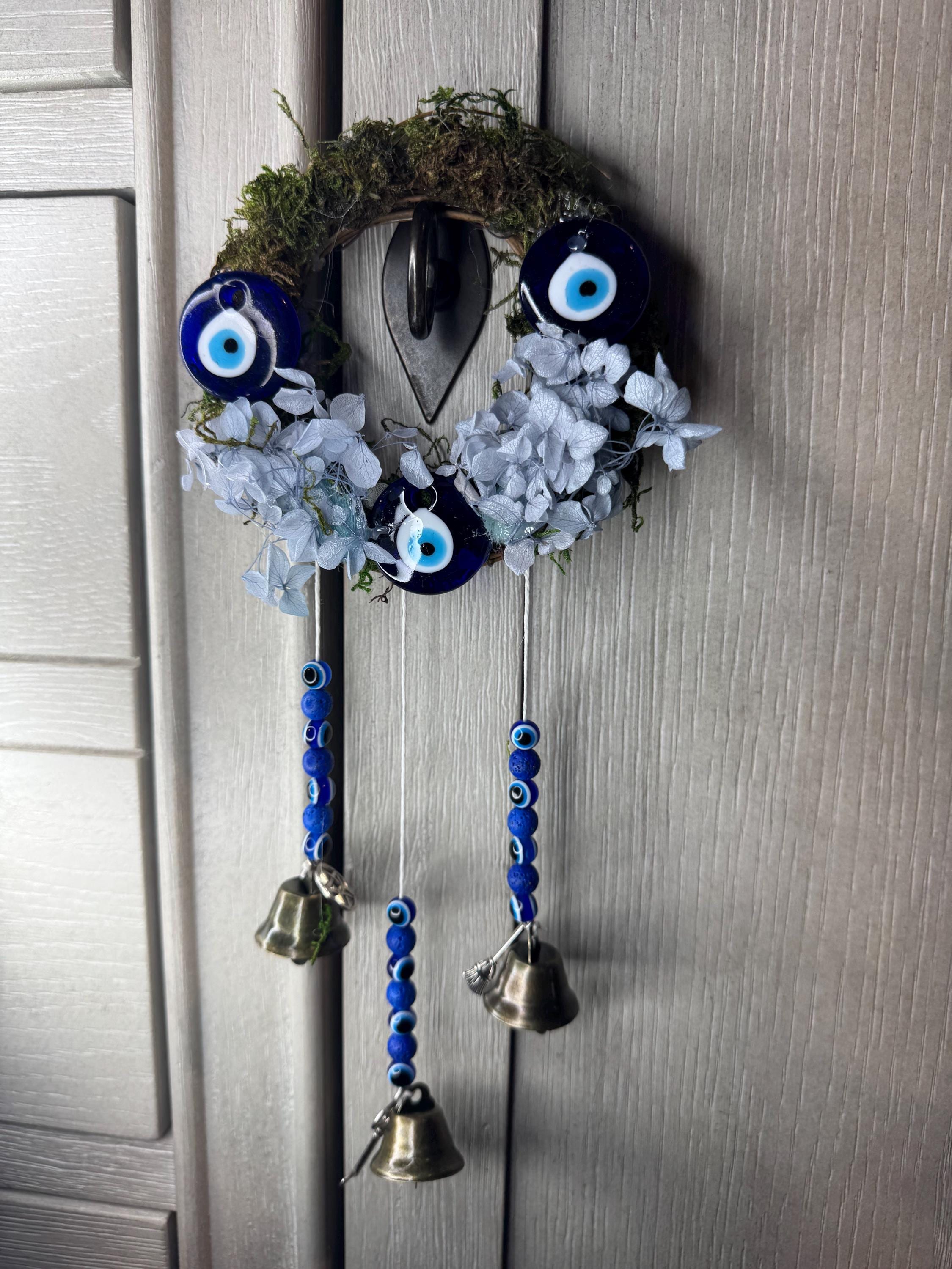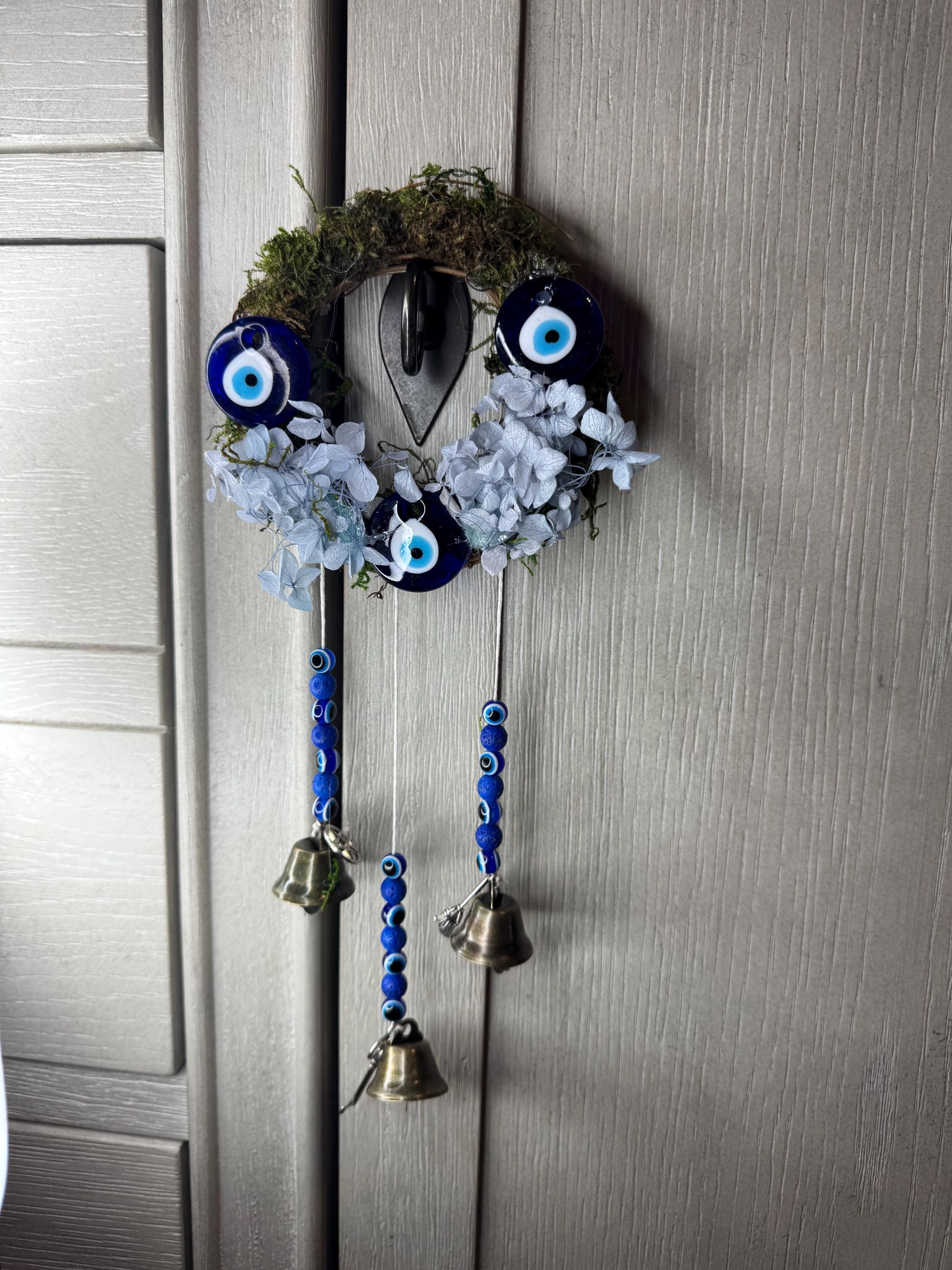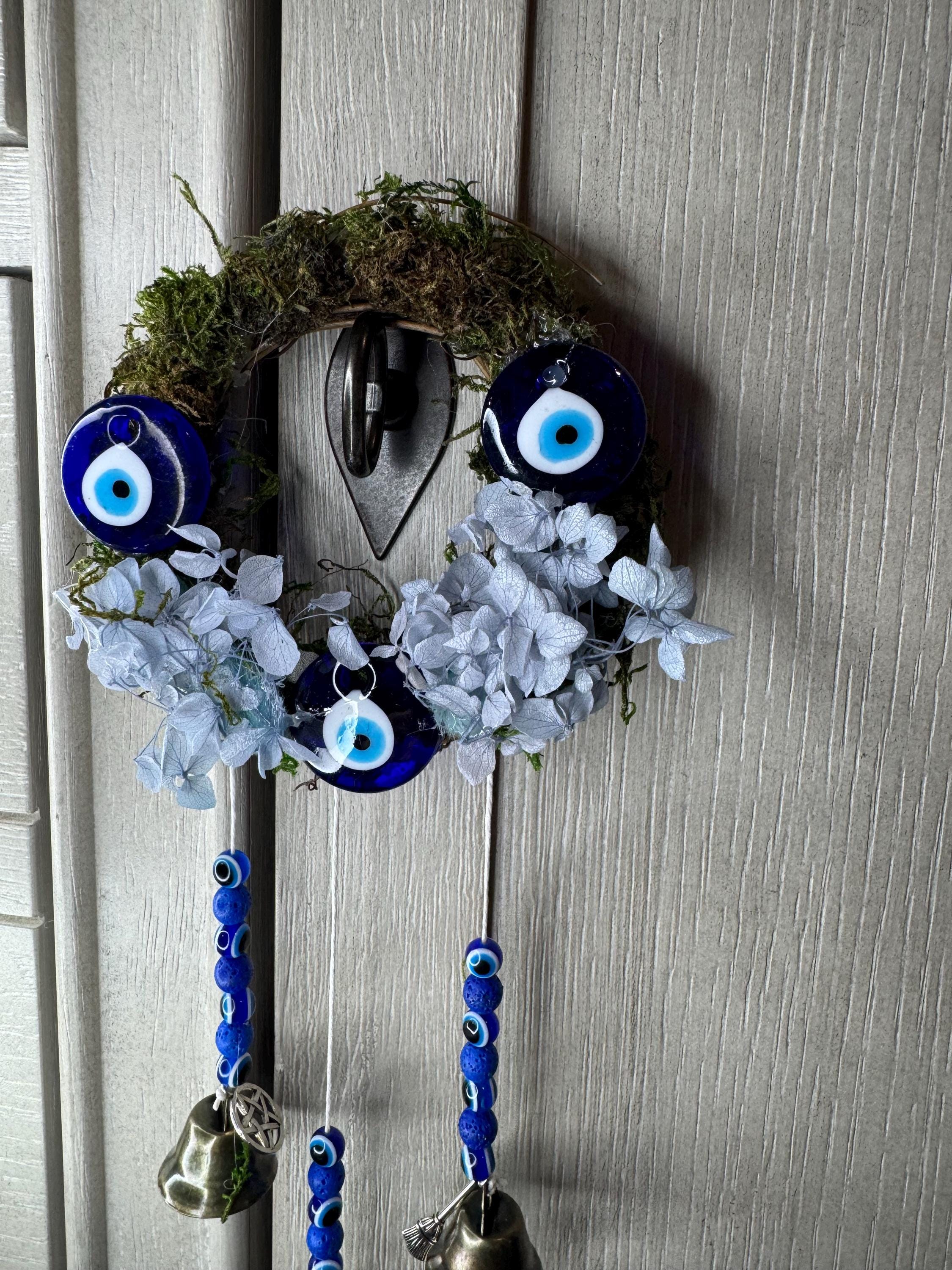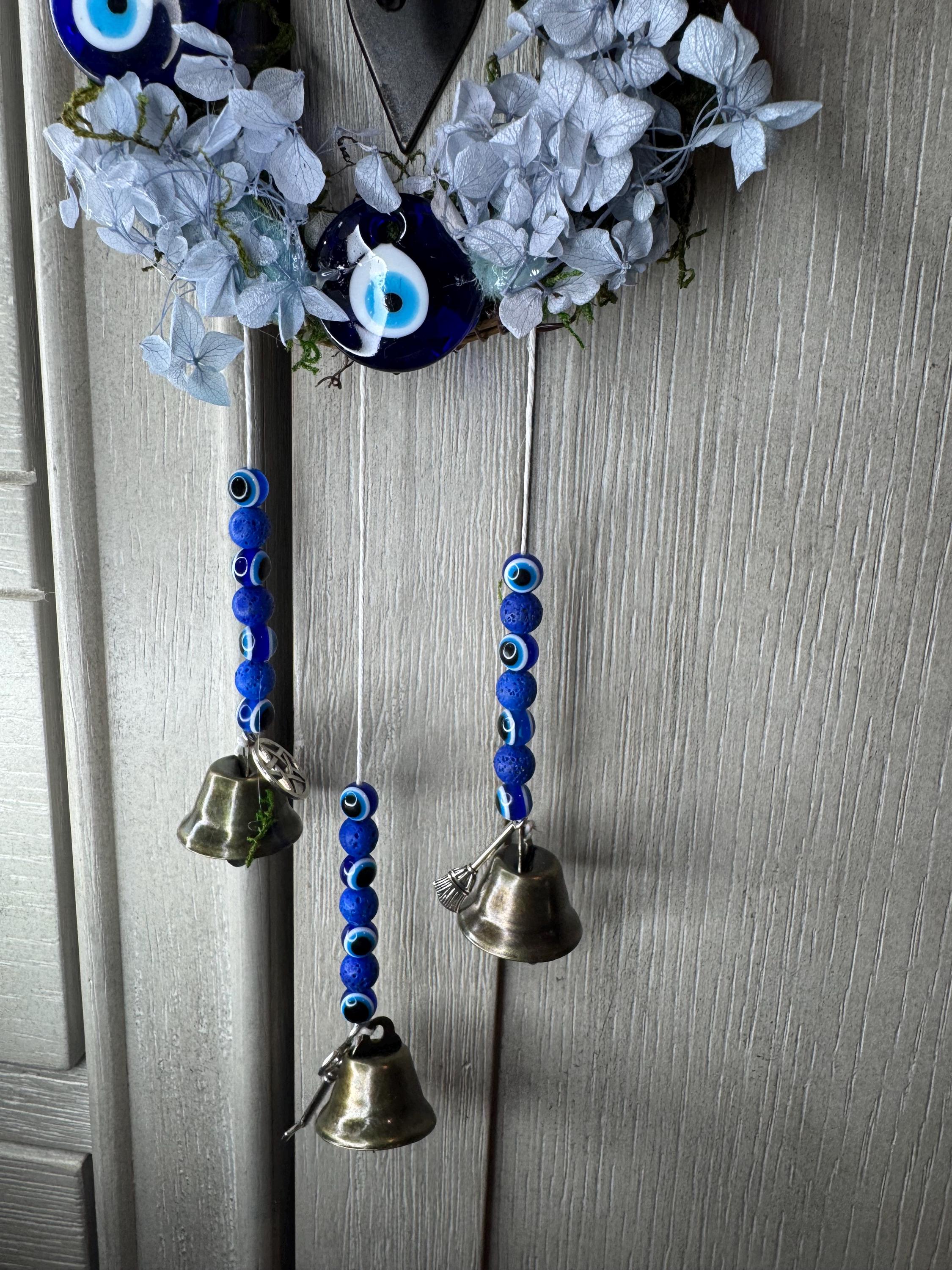 3" Grapevine Witch Bell Wreath. Made with real dried flowers, bells, silver charms, beads, evil eye charms. Witches' Bells are primarily used for protection and clearing negative energy from a home or sacred space. They are hung on doorknobs or near entrances to chime and ward off unwanted spirits or energy as the door opens and closes. Blessed Be!