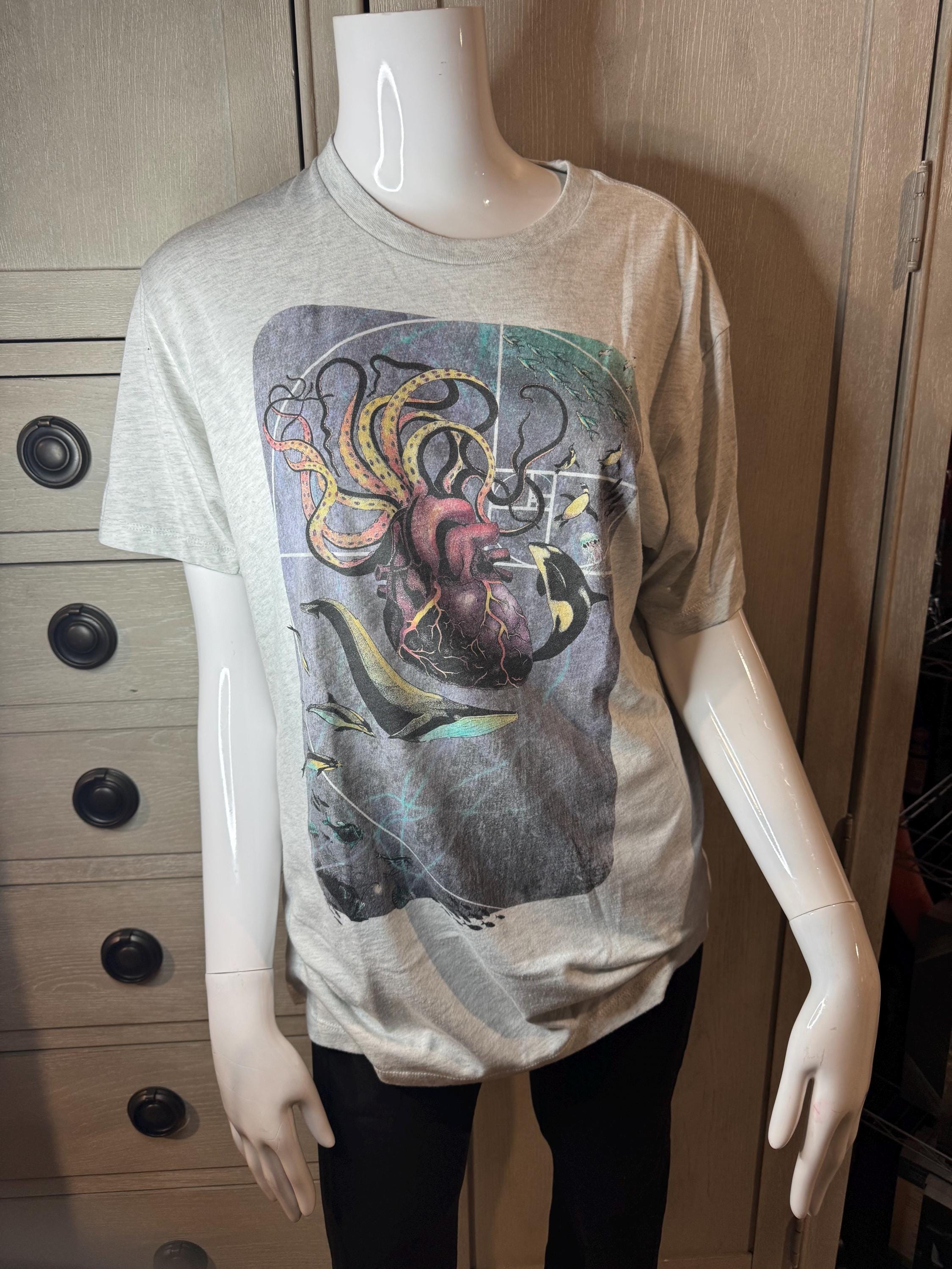 Women's Light Gray Size Small Earthbound T-shirt NEW. Round Neckline, Shortsleeve, with a heart design on the front. 100% Cotton, very soft! Blessed Be!