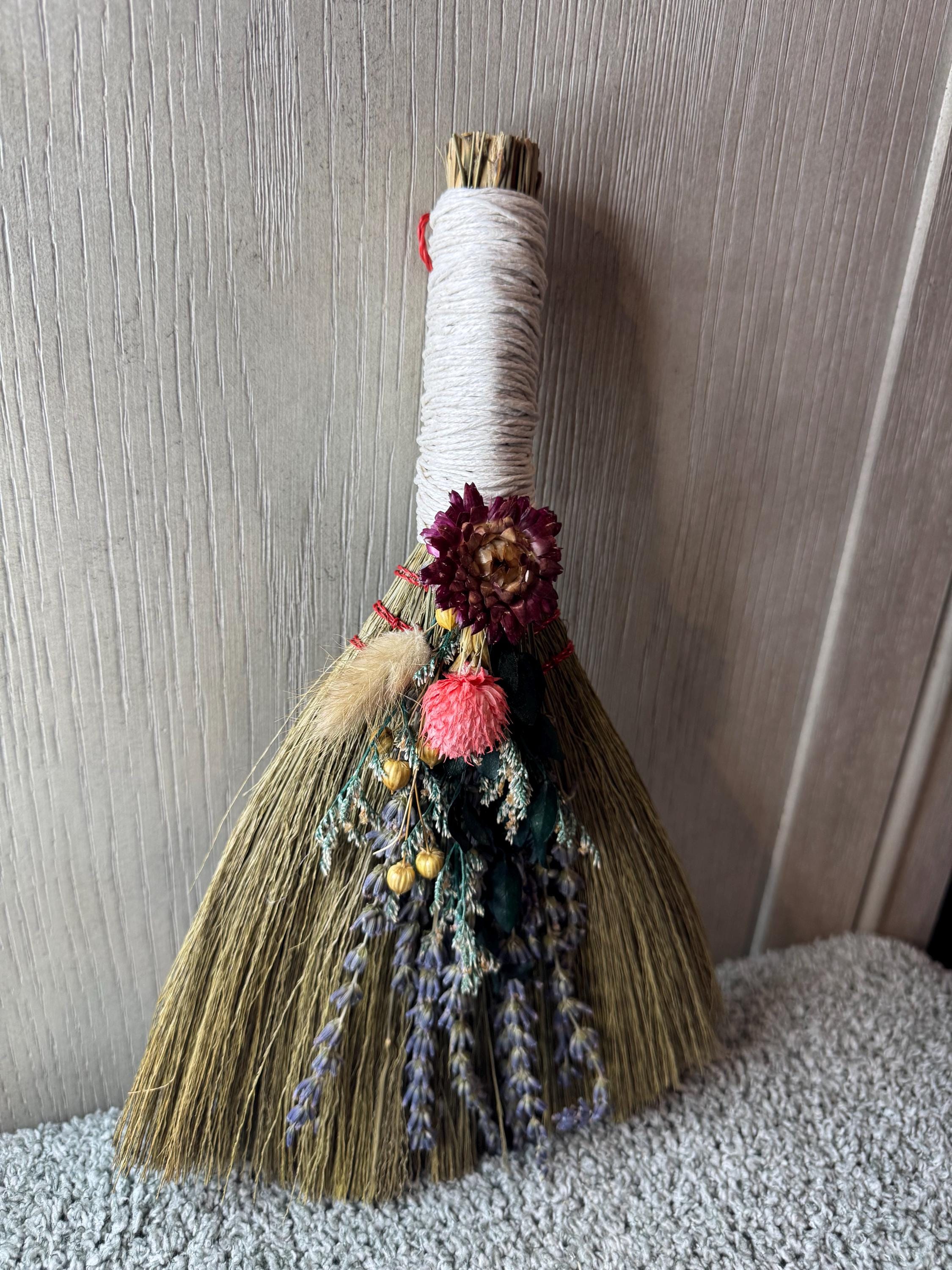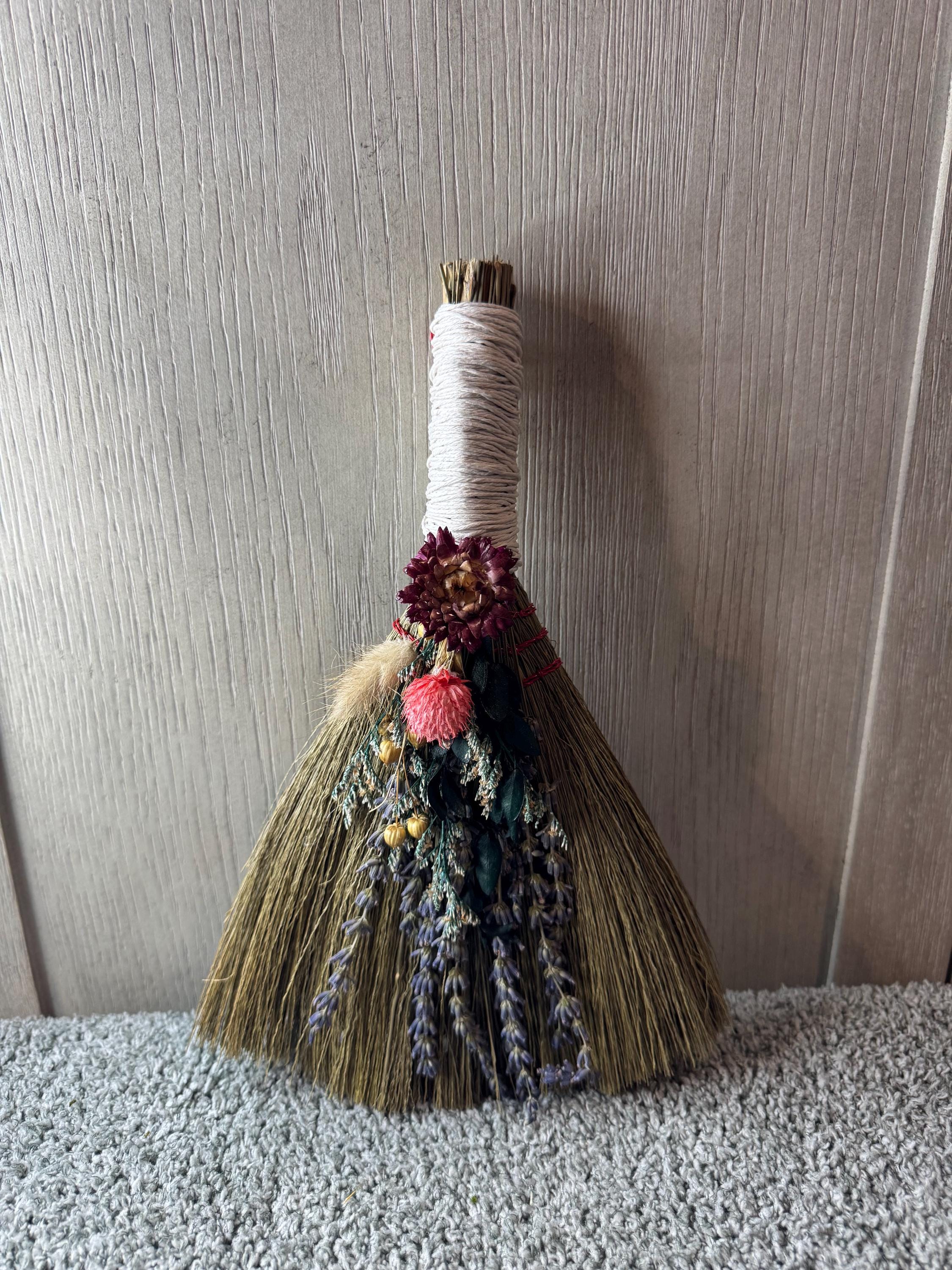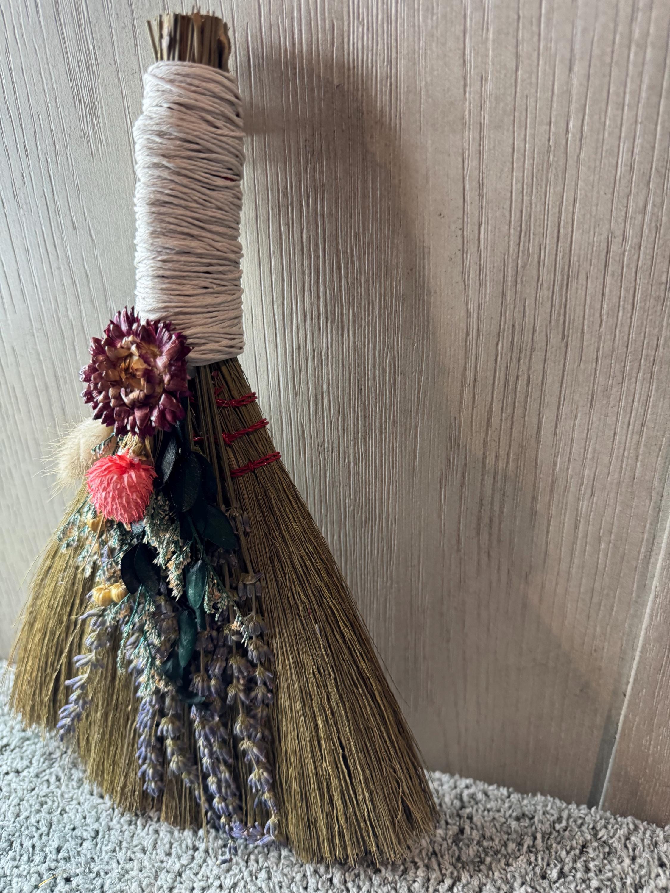 12" Witch Besom/Broom/Altar Broom, made with real dried flowers that have been sprayed with Dried Flower Preservation spray. Handle is wrapped in Hemp. Brooms and besoms are used for protection, to ward off evil spirits, and cleansing of ritual spaces. Usually held a few inches above the floor, a special broom is used to cleanse a space of negative energies or "energetic clutter" before creating a magic circle. Blessed Be!