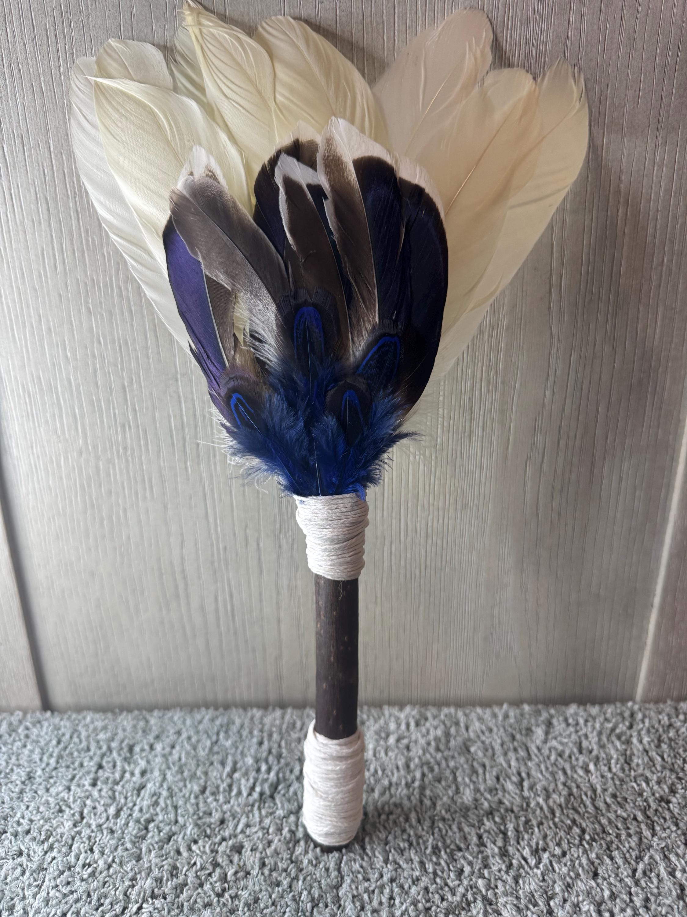 Altar/Ceremonial Feather Fan Handmade! Feather fans are primarily used in ceremonies, where sacred herbs like safe, cedar, sweetgrass, or copal are burned. The fan directs the smoke over people or sacred items, sweeping away negativity calling in blessings, and balancing the spiritual body. Blessed Be!