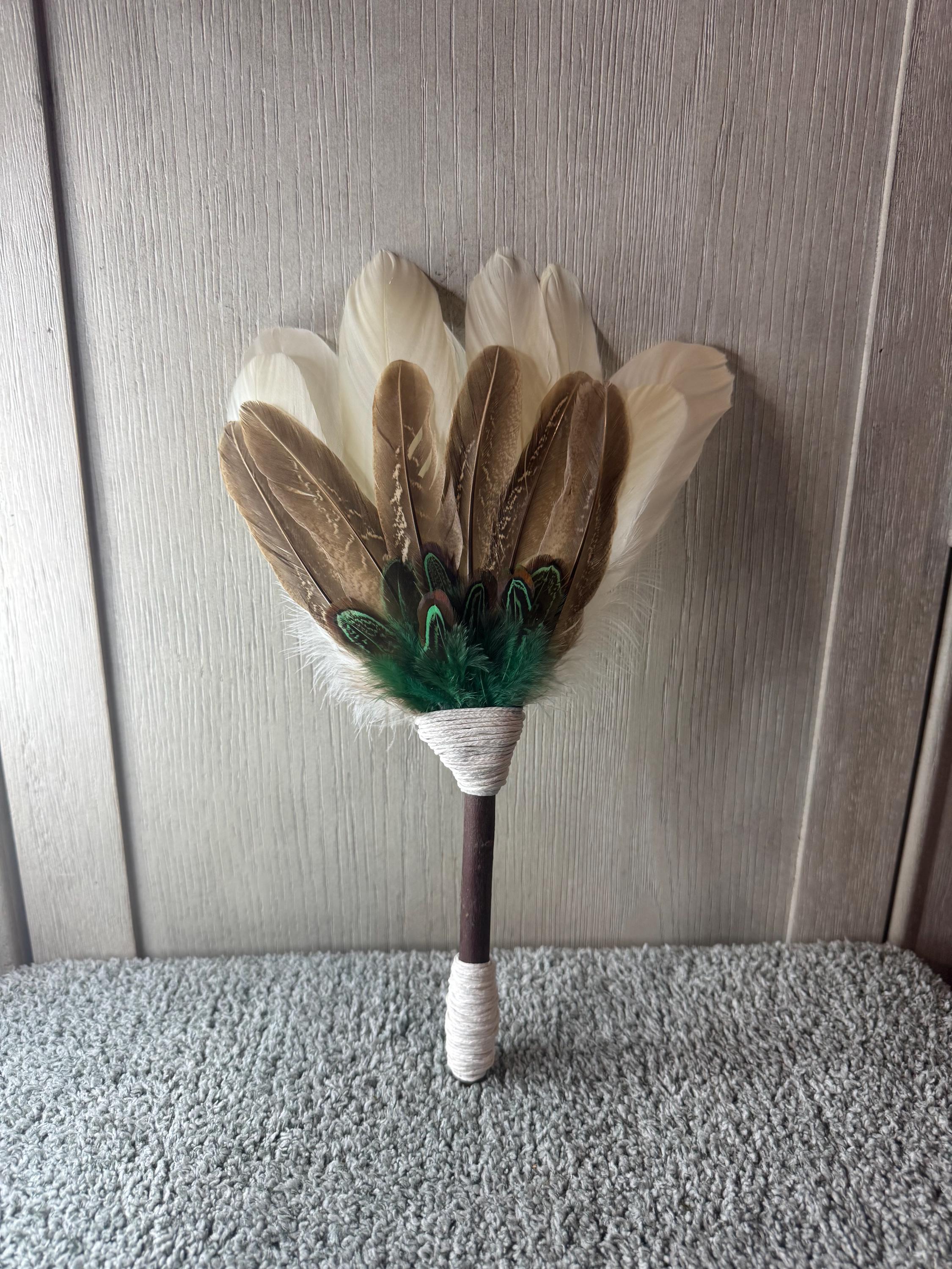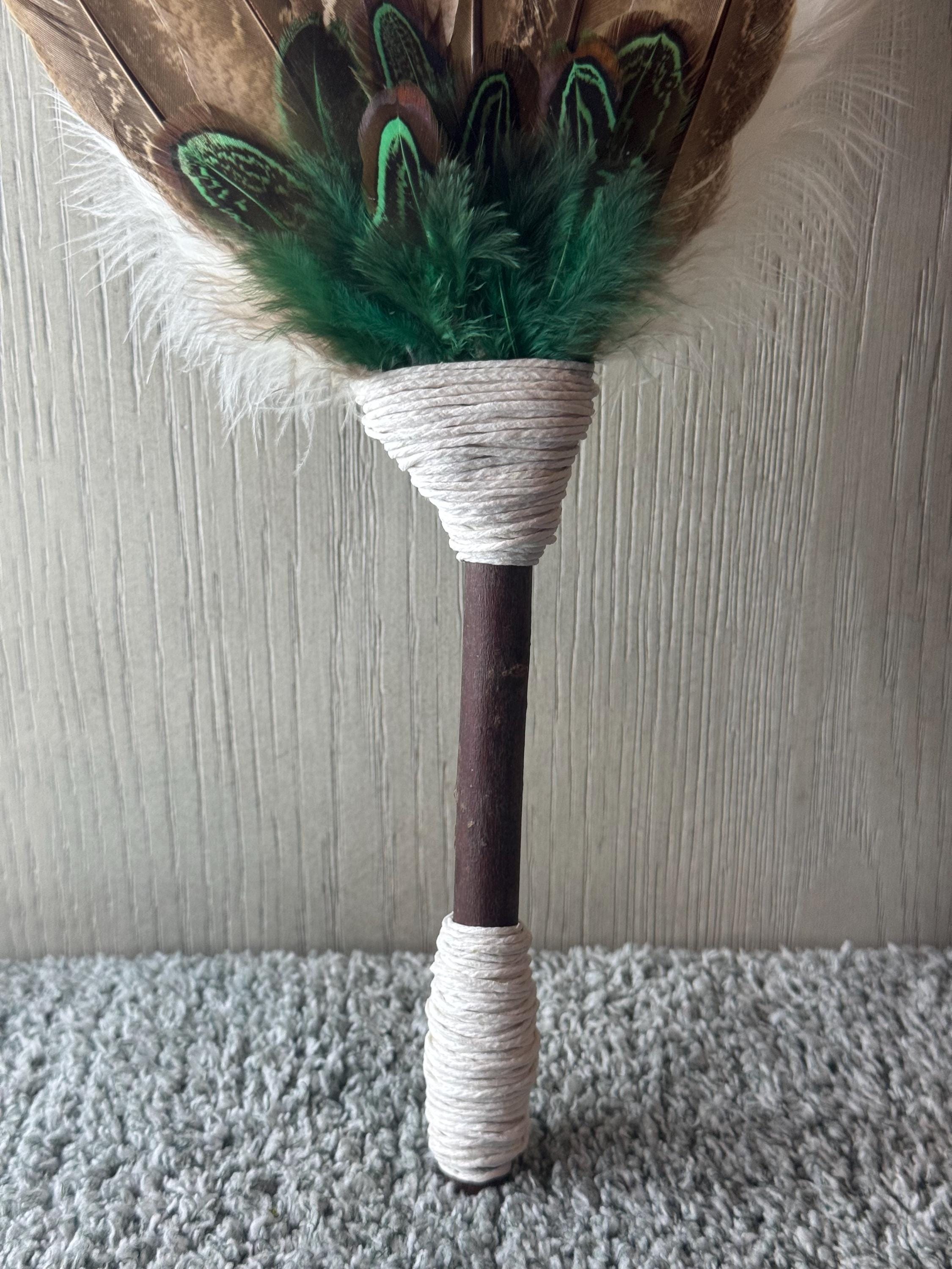 Altar/Ceremonial/Smudging Feather Fan. Feather fans are primarily used in smudging ceremonies, where sacred herbs like sage, cedar, sweetgrass or copal are burned. The fan directs the smoke over people or sacred items, sweeping away negativity, calling in blessings, and balancing the spiritual body. Blessed Be!