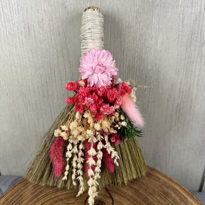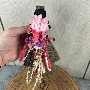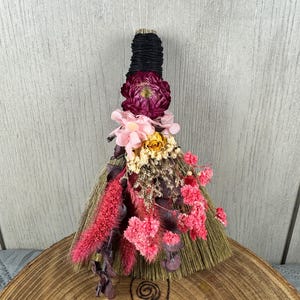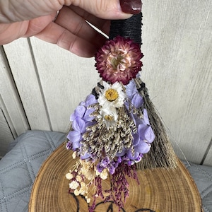 Brooms and besoms are used for protection, to ward off evil spirits, and cleansing of ritual spaces. Usually help a few inches above the floor, a special broom is used to cleanse a space of negative energies or "energetic clutter" before creating a ritual or magic circle. Made with real dried preserved flowers and wrapped with hemp. Blessed Be!
