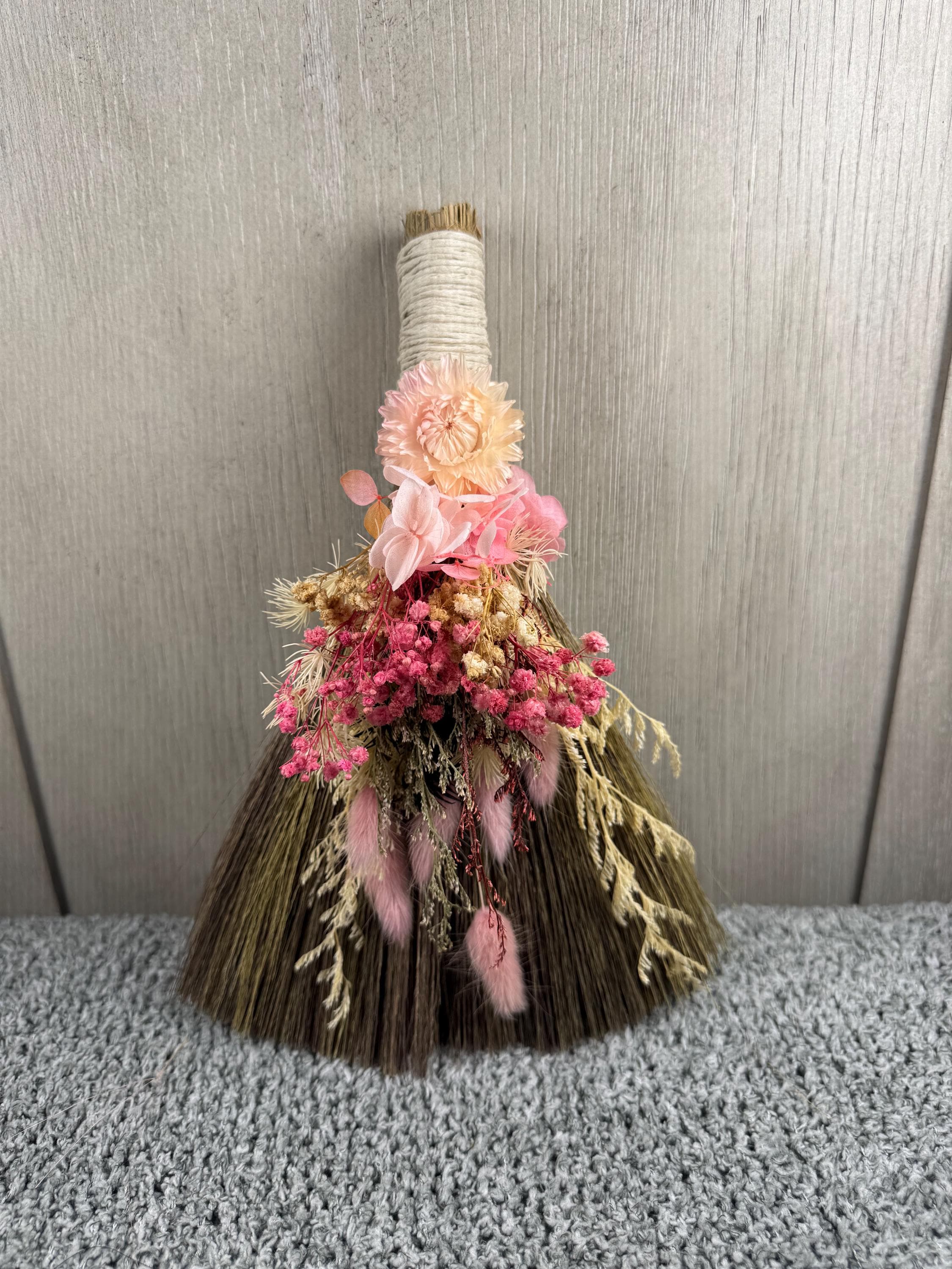 Brooms and besoms are used for protection, to ward off evil spirits, and cleansing of ritual spaces. Usually help a few inches above the floor, a special broom is used to cleanse a space of negative energies or "energetic clutter" before creating a ritual or magic circle. Made with real dried preserved flowers and wrapped with hemp. Blessed Be!