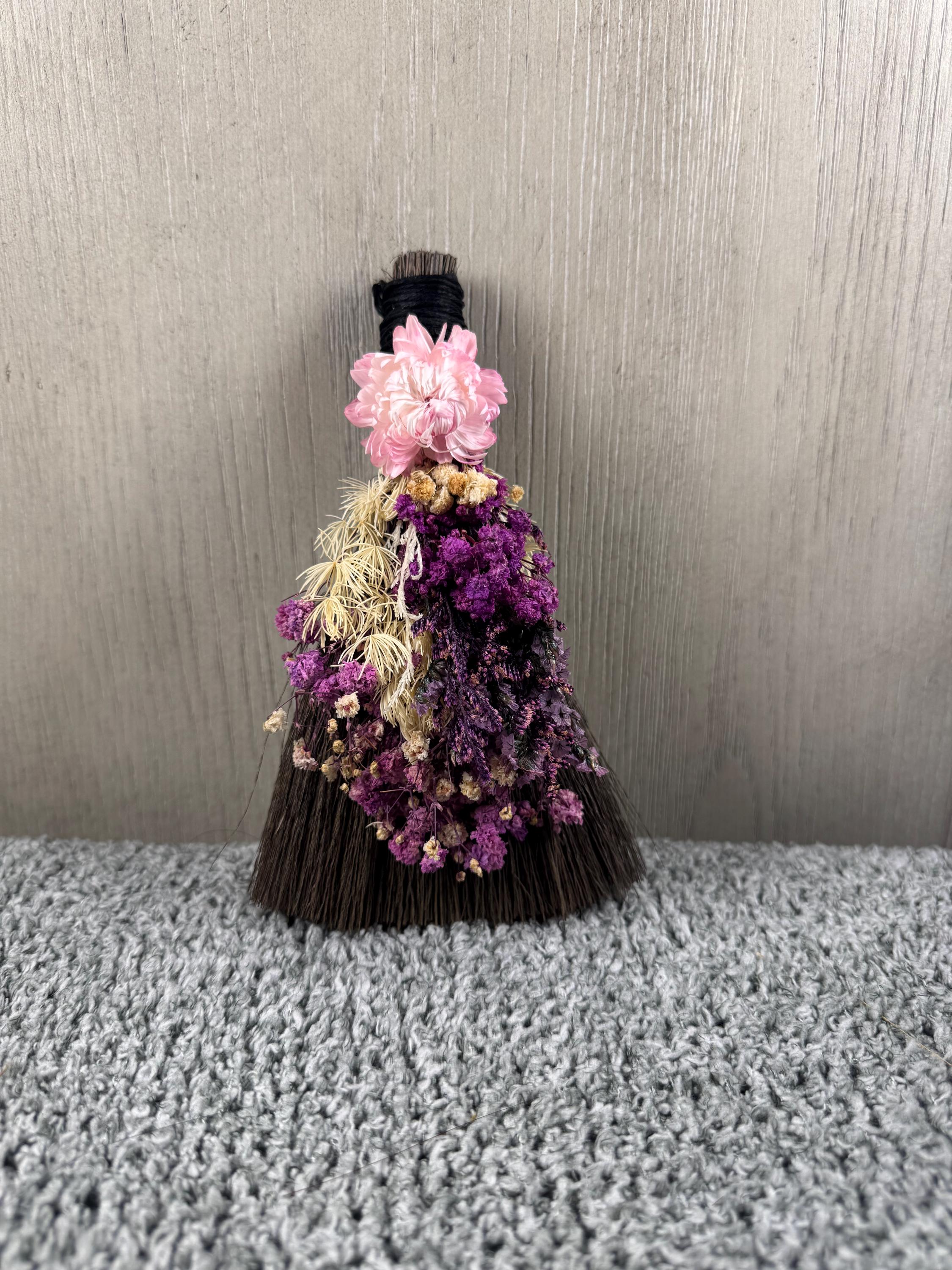 Brooms and besoms are used for protection, to ward off evil spirits, and cleansing of ritual spaces. Usually help a few inches above the floor, a special broom is used to cleanse a space of negative energies or "energetic clutter" before creating a ritual or magic circle. Made with real dried preserved flowers and wrapped with hemp. Blessed Be!