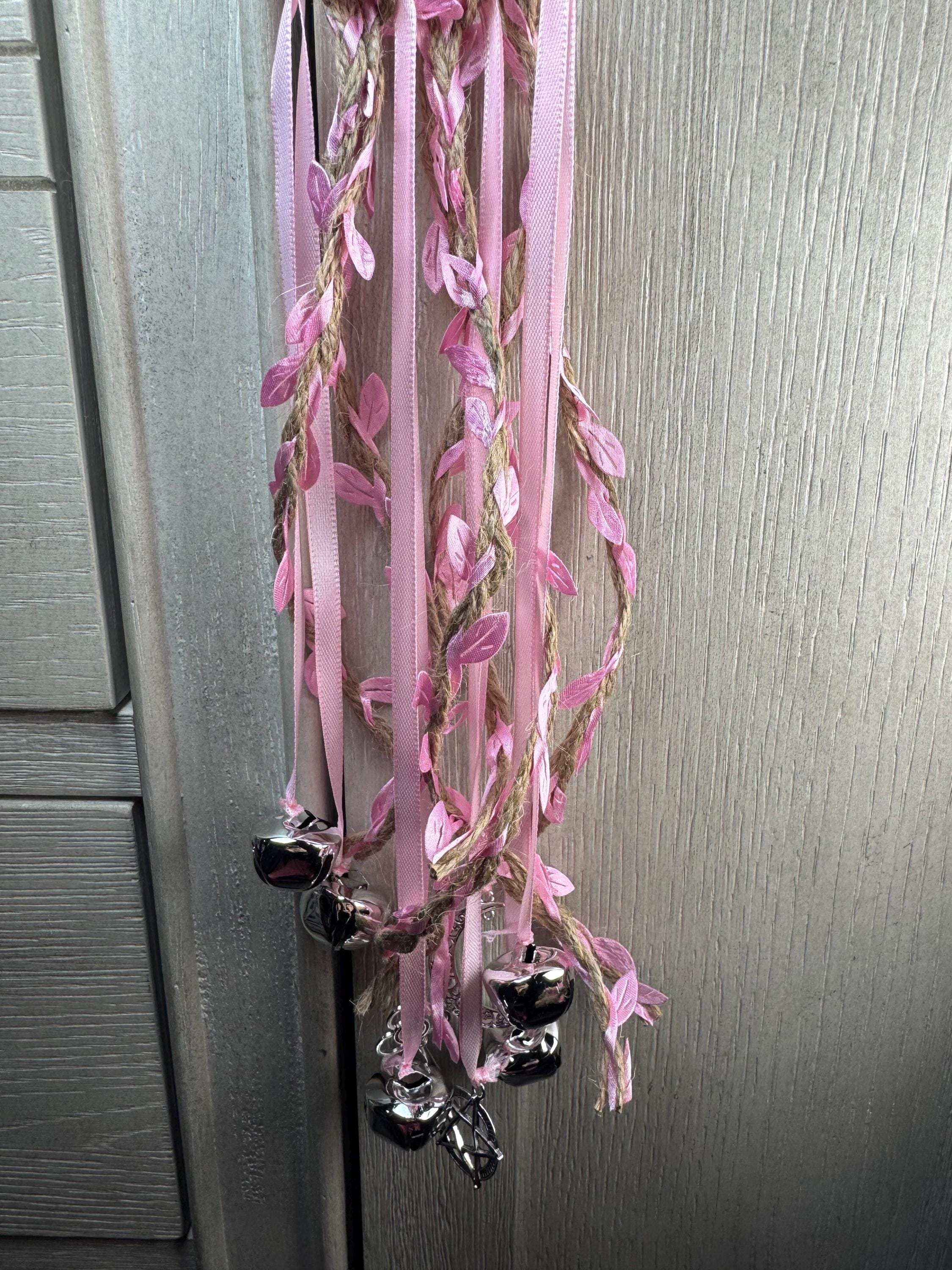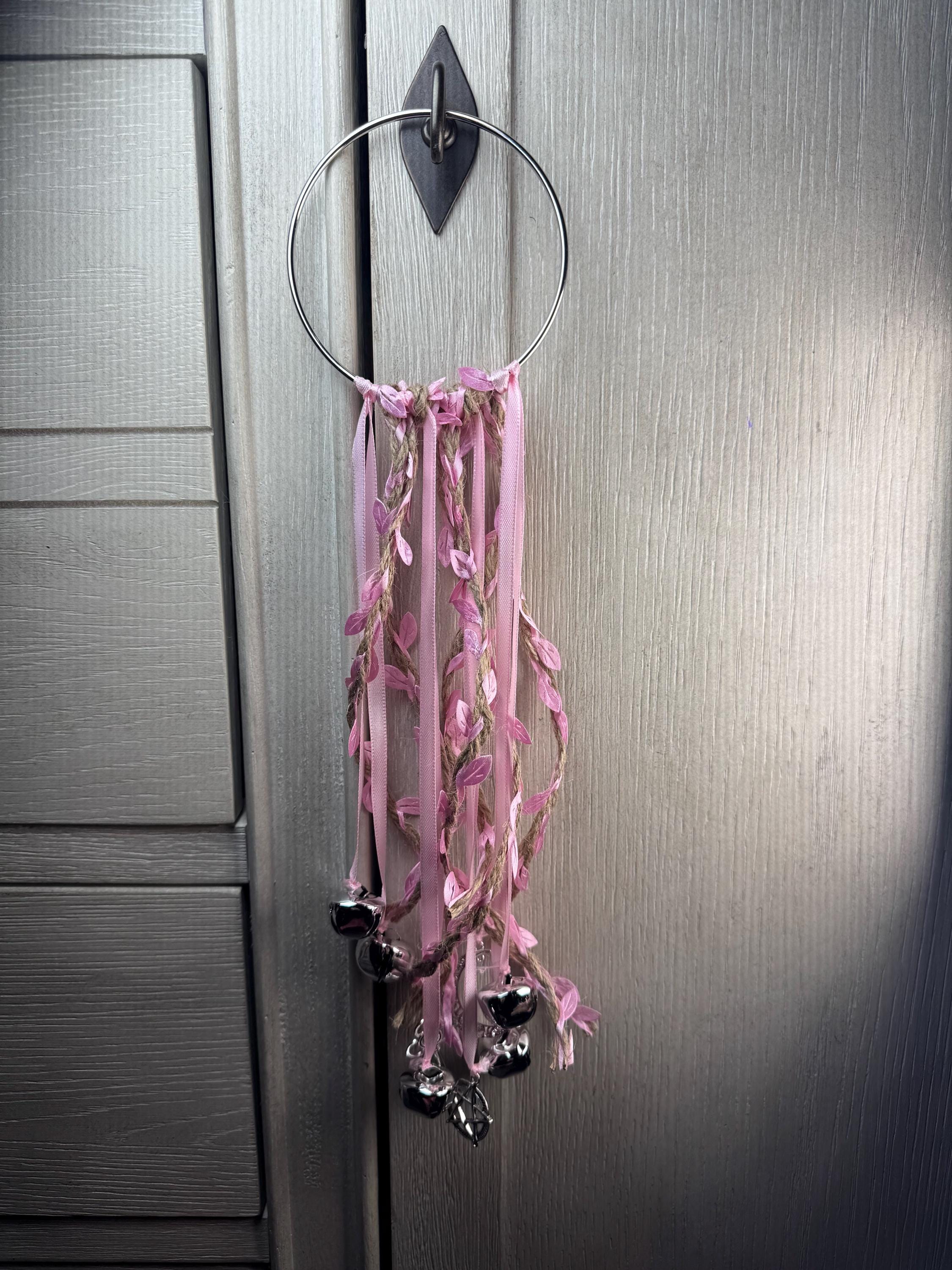 Pink Doorknob Witch Bells on 4" Silver Ring
