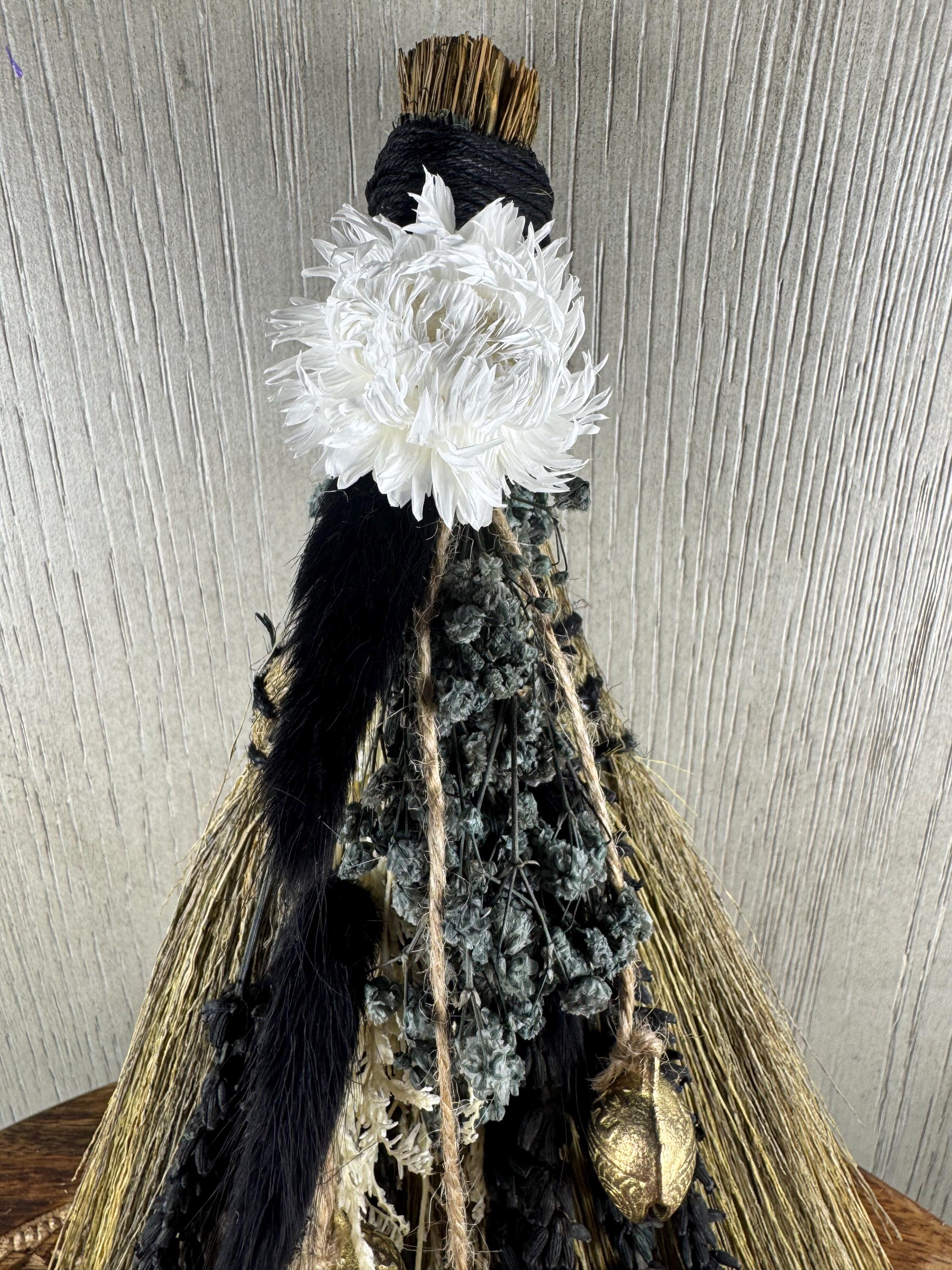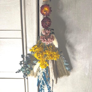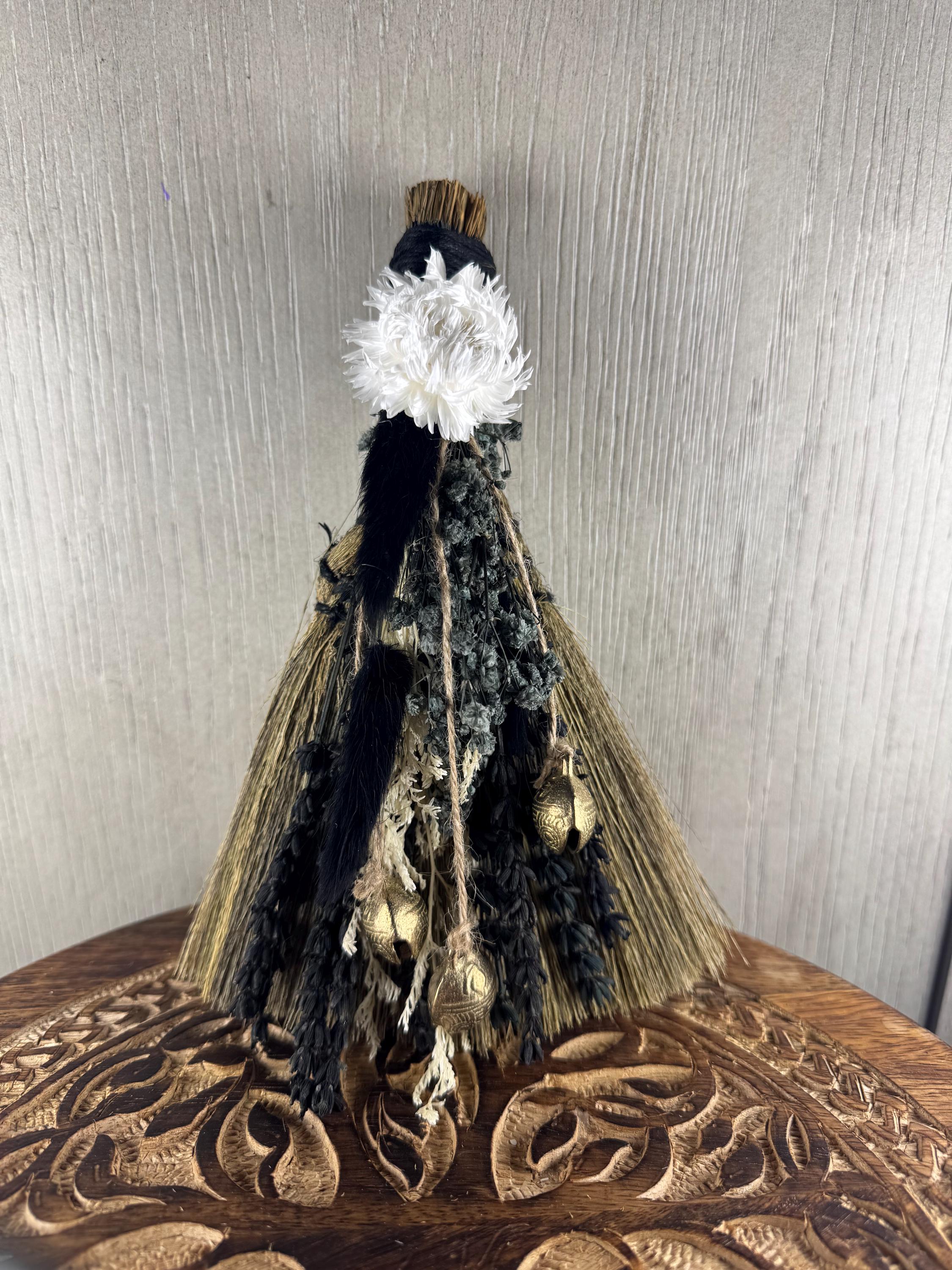 8" Handmade Altar Besom/Broom Made with Real Dried Flowers & Tibetan Bells